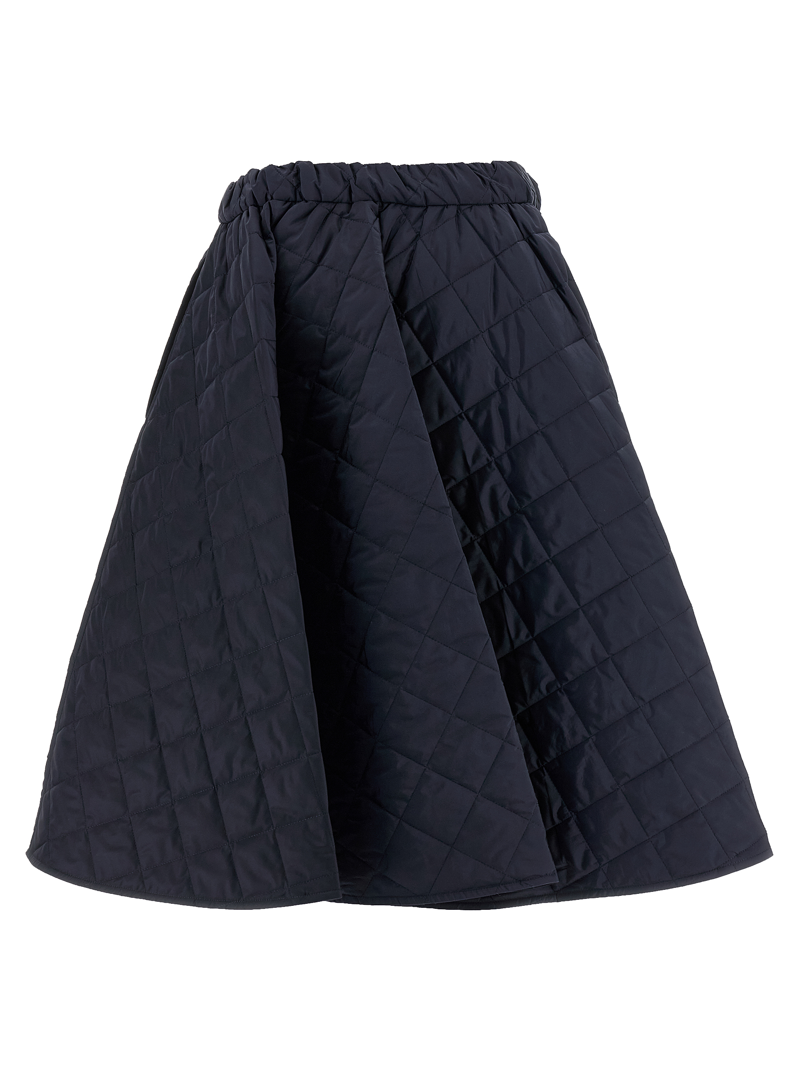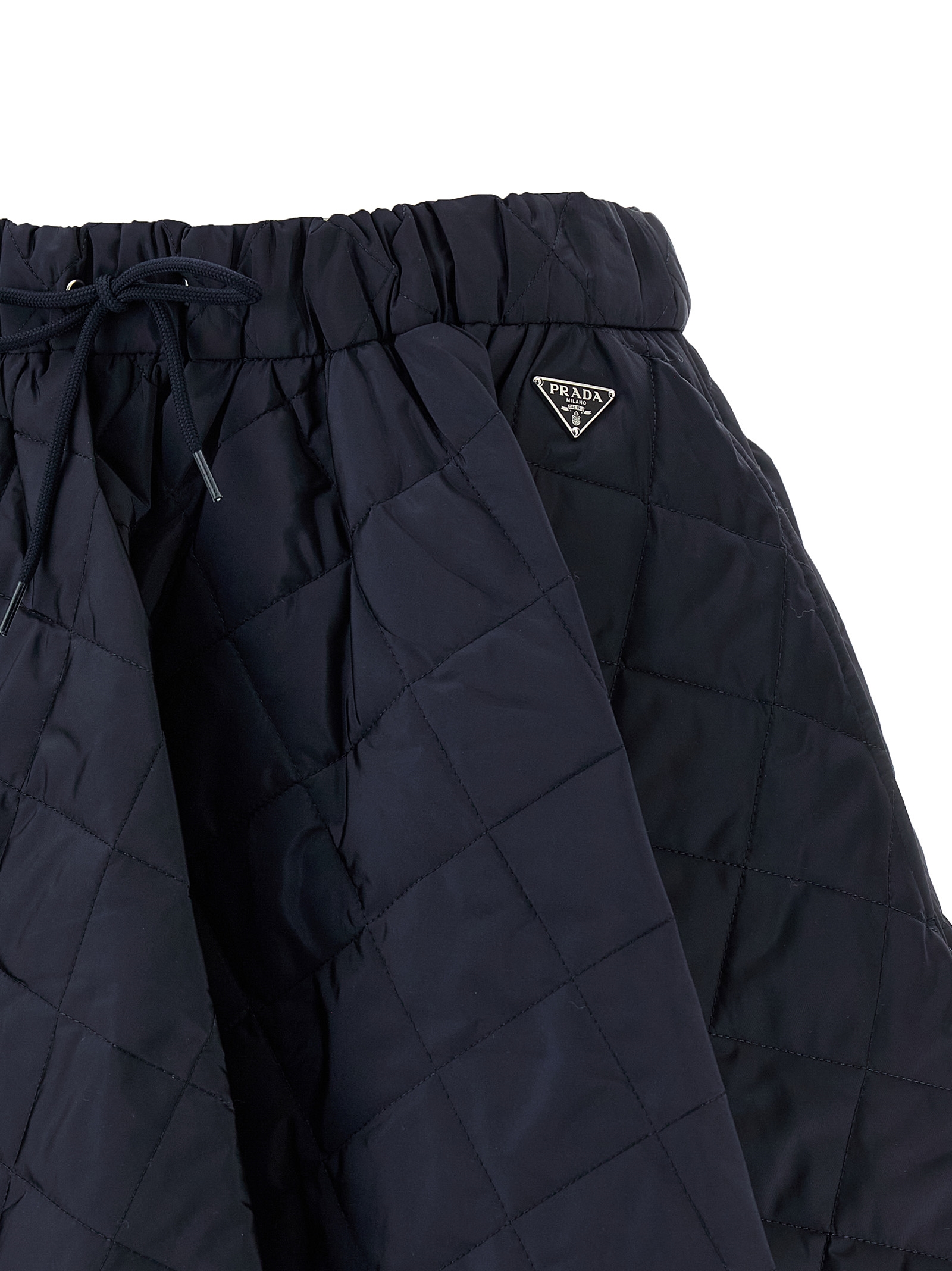 Midi skirt in slightly padded quilted Re-Nylon, wheel model, triangle logo in enameled metal on the front, drawstring elastic waistband, pockets, unlined. SUSTAINABLE: This product is made with Re-Nylon, a regenerated yarn made from recycled and purified plastic collected in oceans, fishery nets and textile fibers.