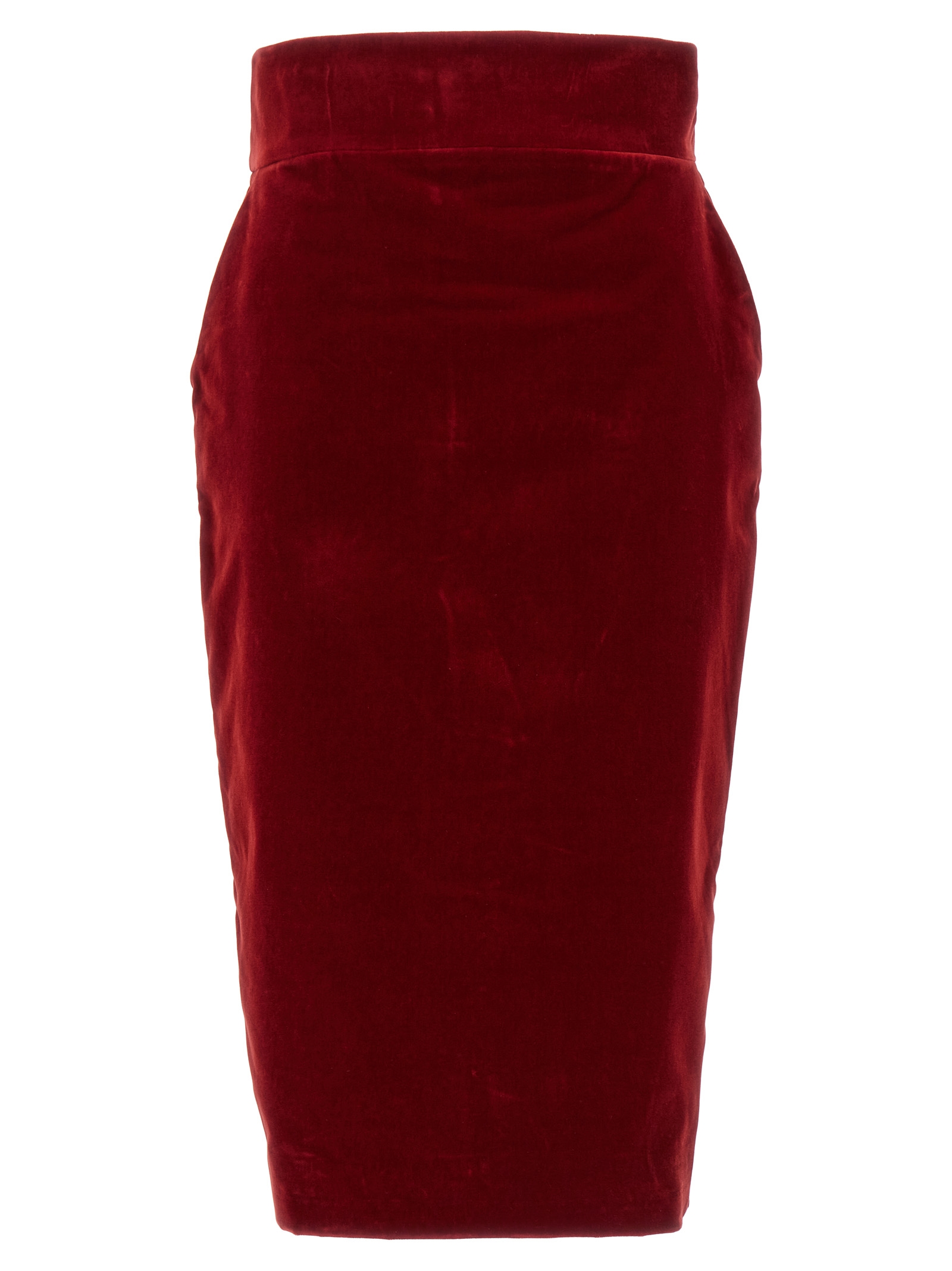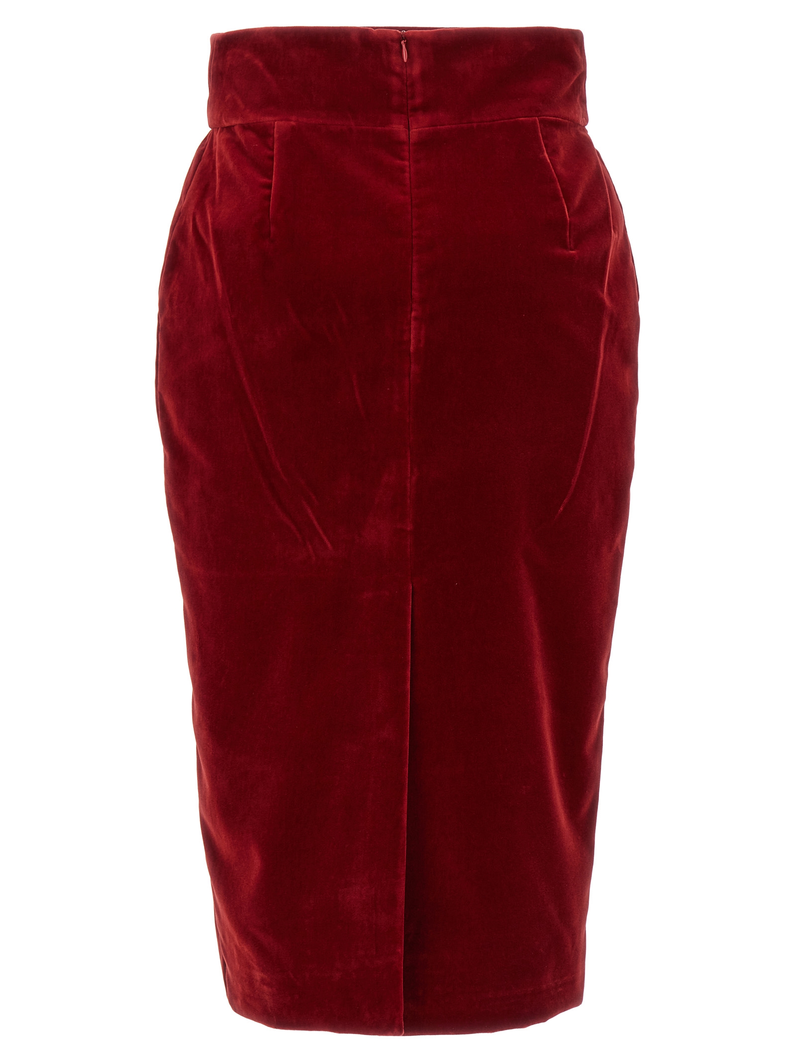 Velvet midi skirt with pockets, a zip closure, pockets.