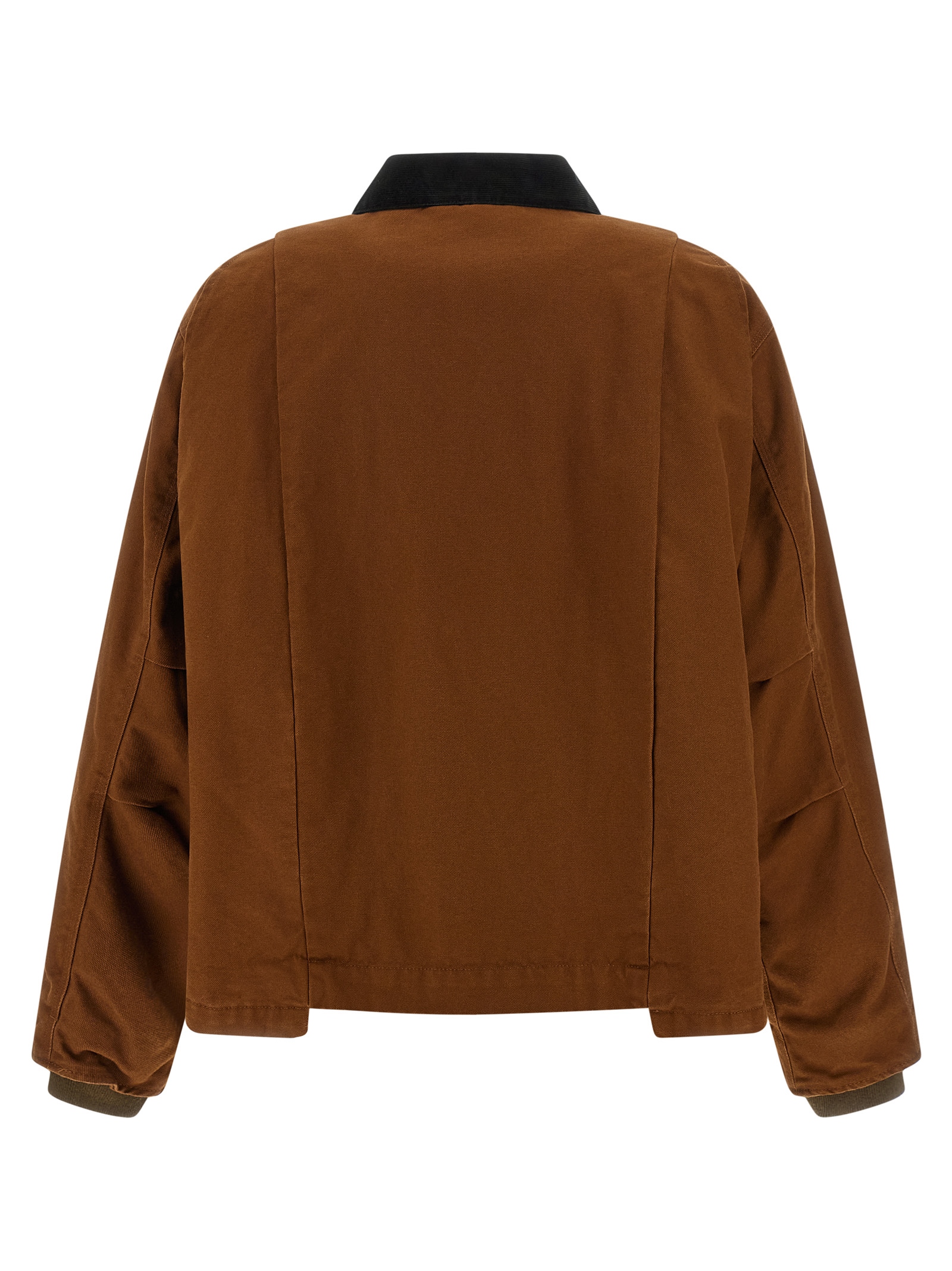 Sacai x Carhartt Wip capsule jacket in heavy cotton canvas with quilted nylon lining, logo patch and front zip closure, corduroy collar, pockets, long sleeves with knitted cuffs, and asymmetrical hem.Өнімнің ерекшеліктері