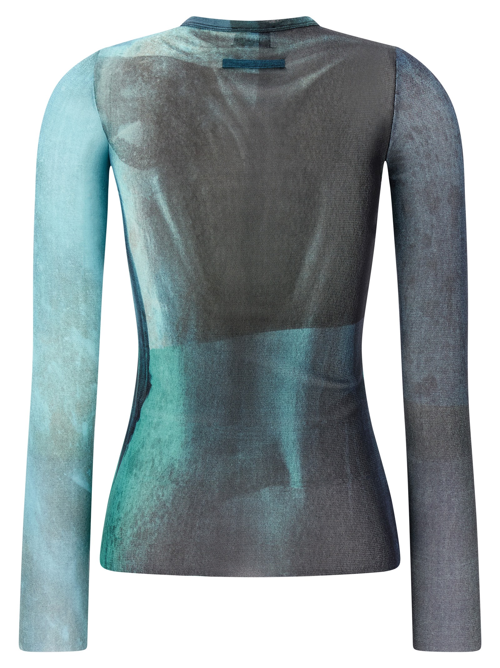 All-over 'Water' print stretch tulle top, crew neck, long sleeves, double-layer fabric with shorter solid color inner layer.Өнімнің ерекшеліктері