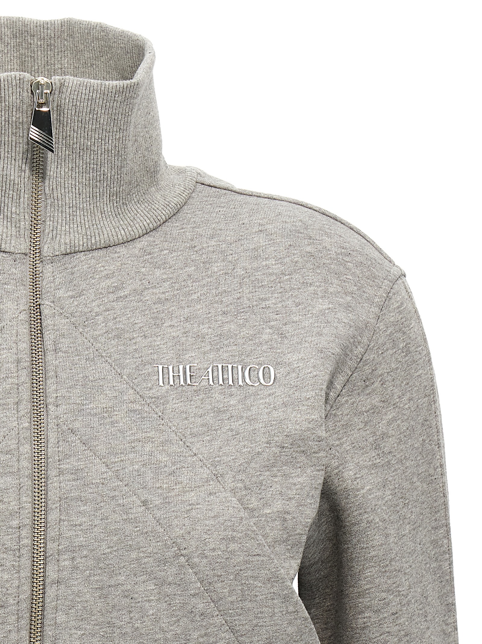 American fleece cotton sweatshirt with front embossed logo, crop style, high neck, zip closure, pockets, long cuffed sleeves.Өнімнің ерекшеліктері