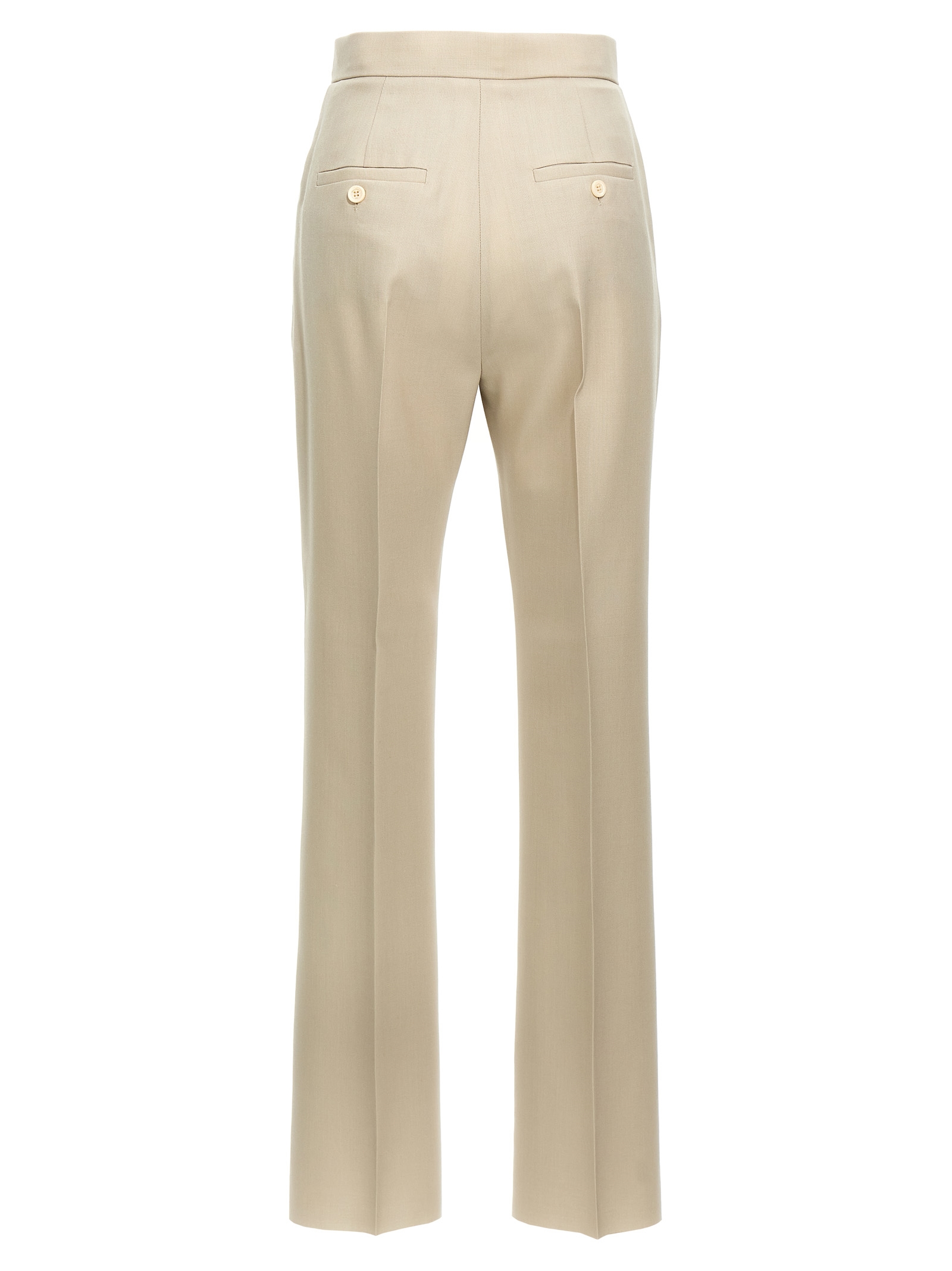 'Turbigo' pants in silk and mohair wool blend, straight leg, ironed pleat, hook and button zip closure, pockets.