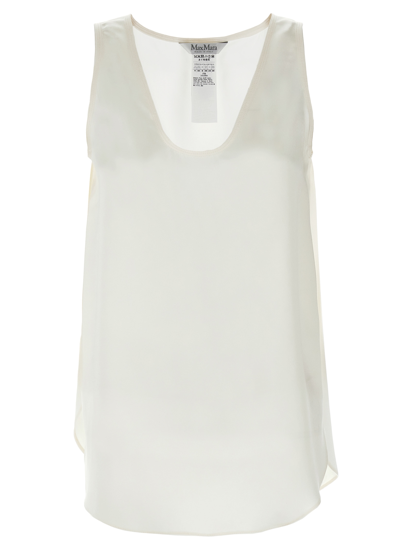 'Filly' sleeveless top in silk with round neckline, side slits all along the side.Өнімнің ерекшеліктері