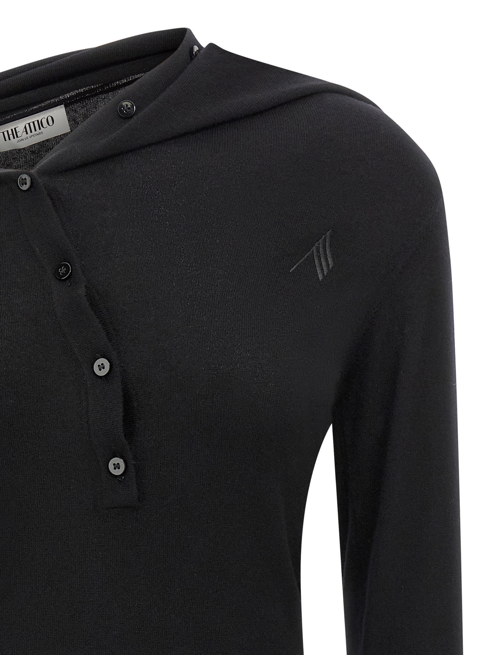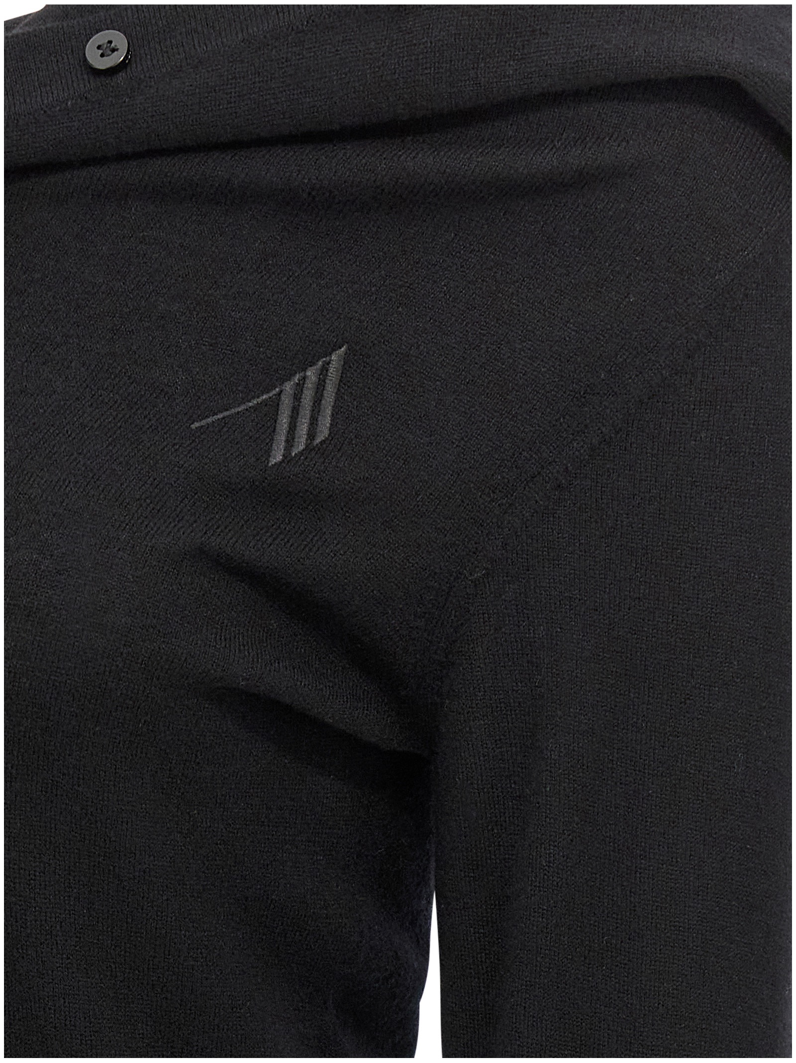 Mini dress in virgin wool and cashmere blend, modular shawl neckline, tone-on-tone logo embroidery and front button closure, long flared sleeves.Өнімнің ерекшеліктері