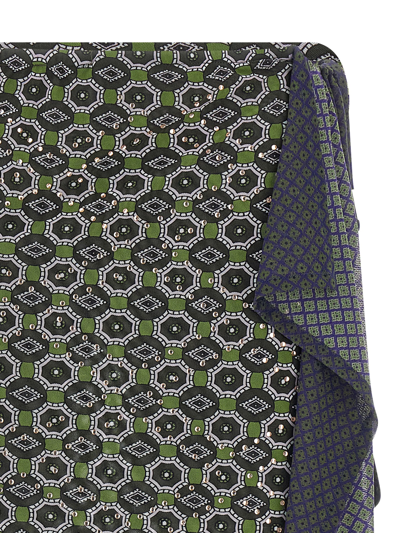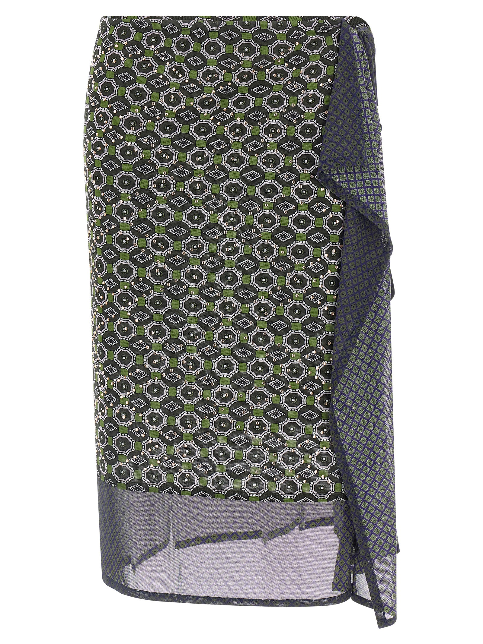Homili' midi skirt with two overlapping layers in semi-transparent patterned tulle with crystal appliqué, and side laces.