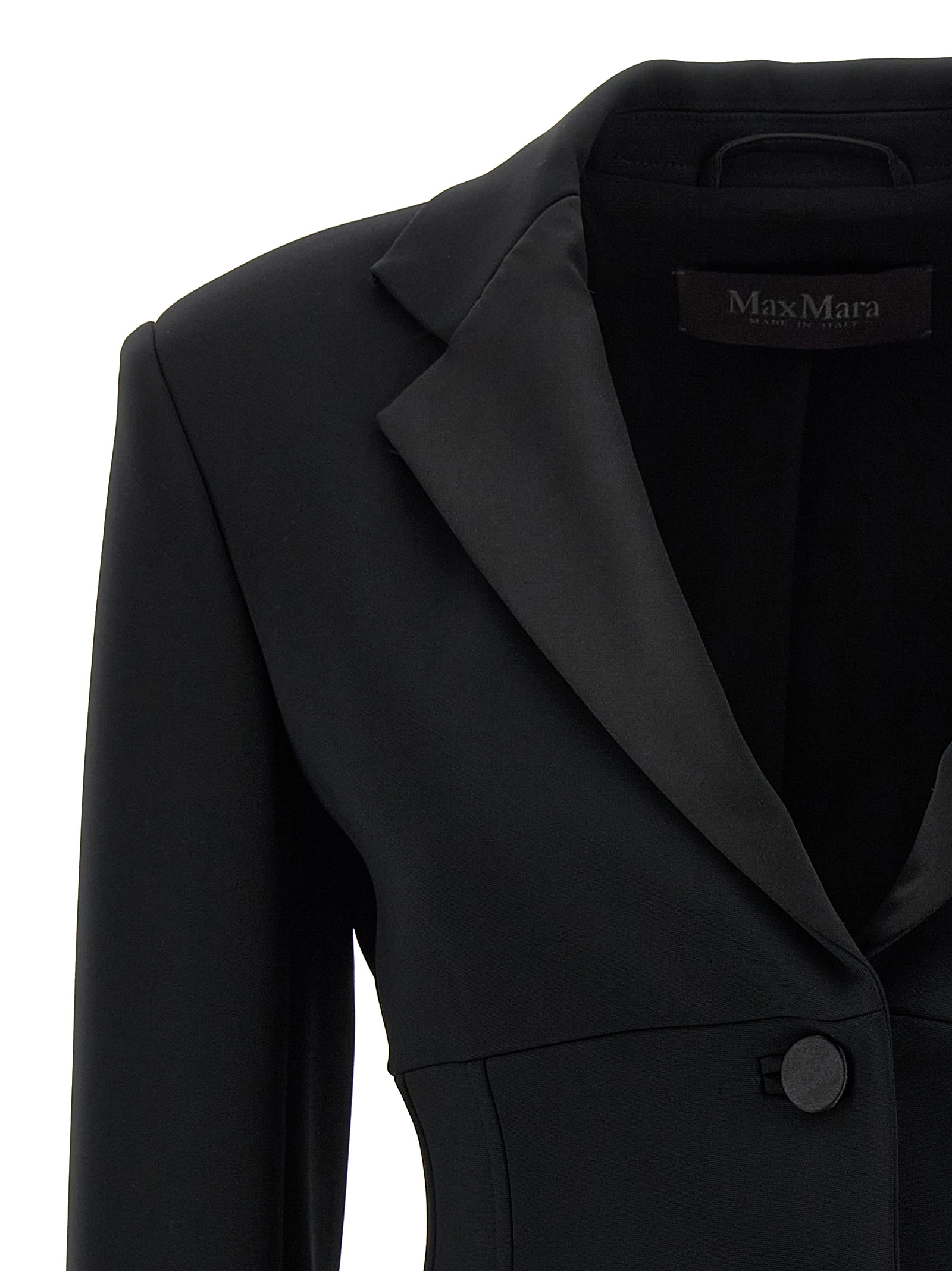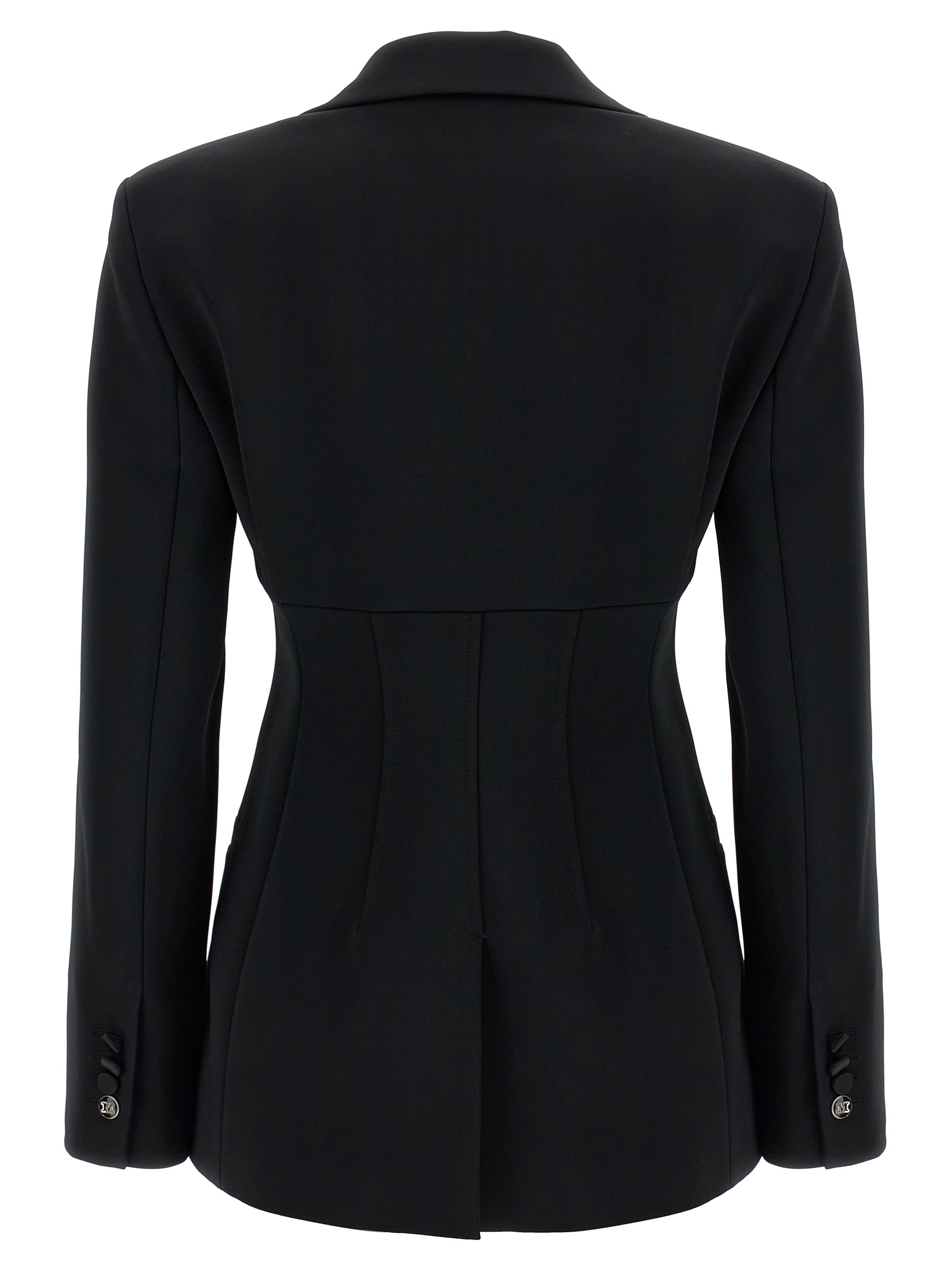 'Oreste' stretch viscose blazer with tone-on-tone satin details, single-breasted model with front button closure, hourglass silhouette with front and back pincer, mirror lapels, patch pockets, structured shoulder strap, long sleeves, back split, lining.Өнімнің ерекшеліктері