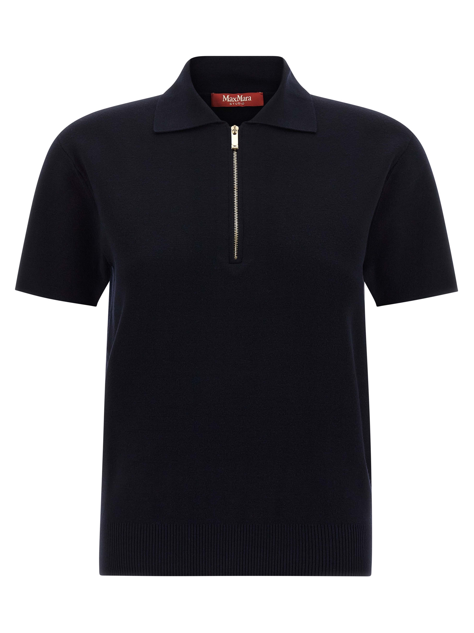 'Teti' thick knit polo shirt with shirt collar, zip and short sleeves.