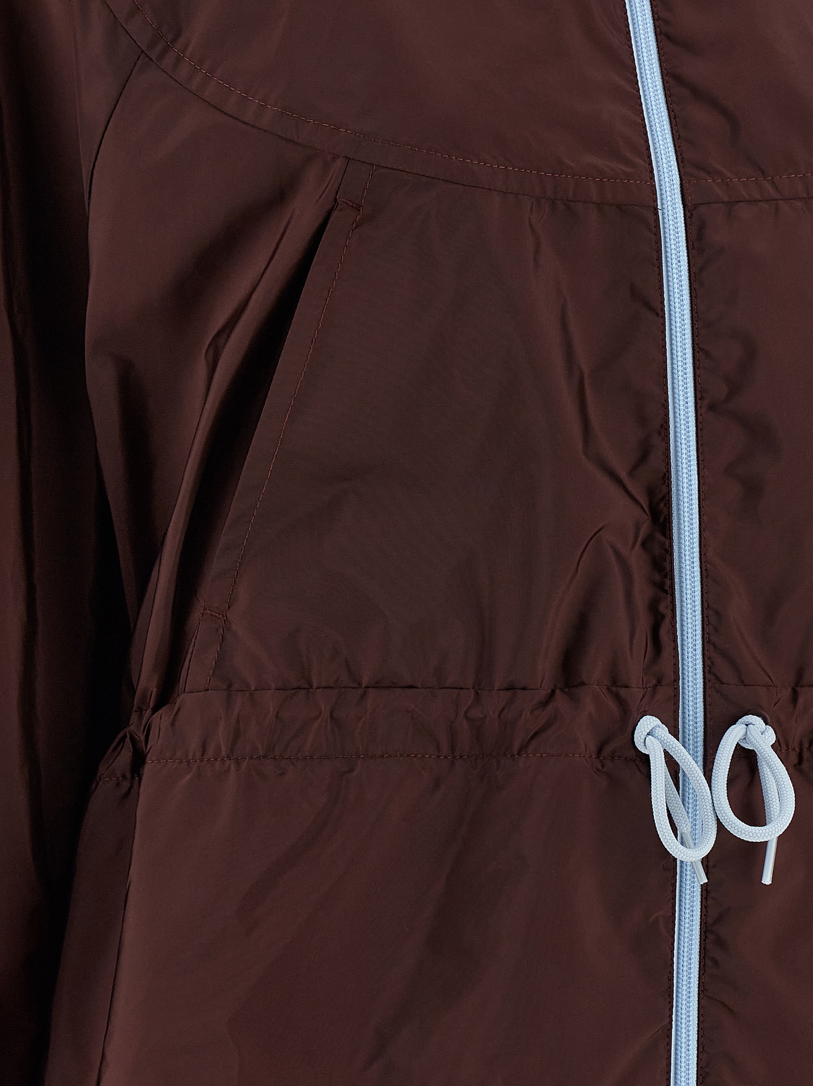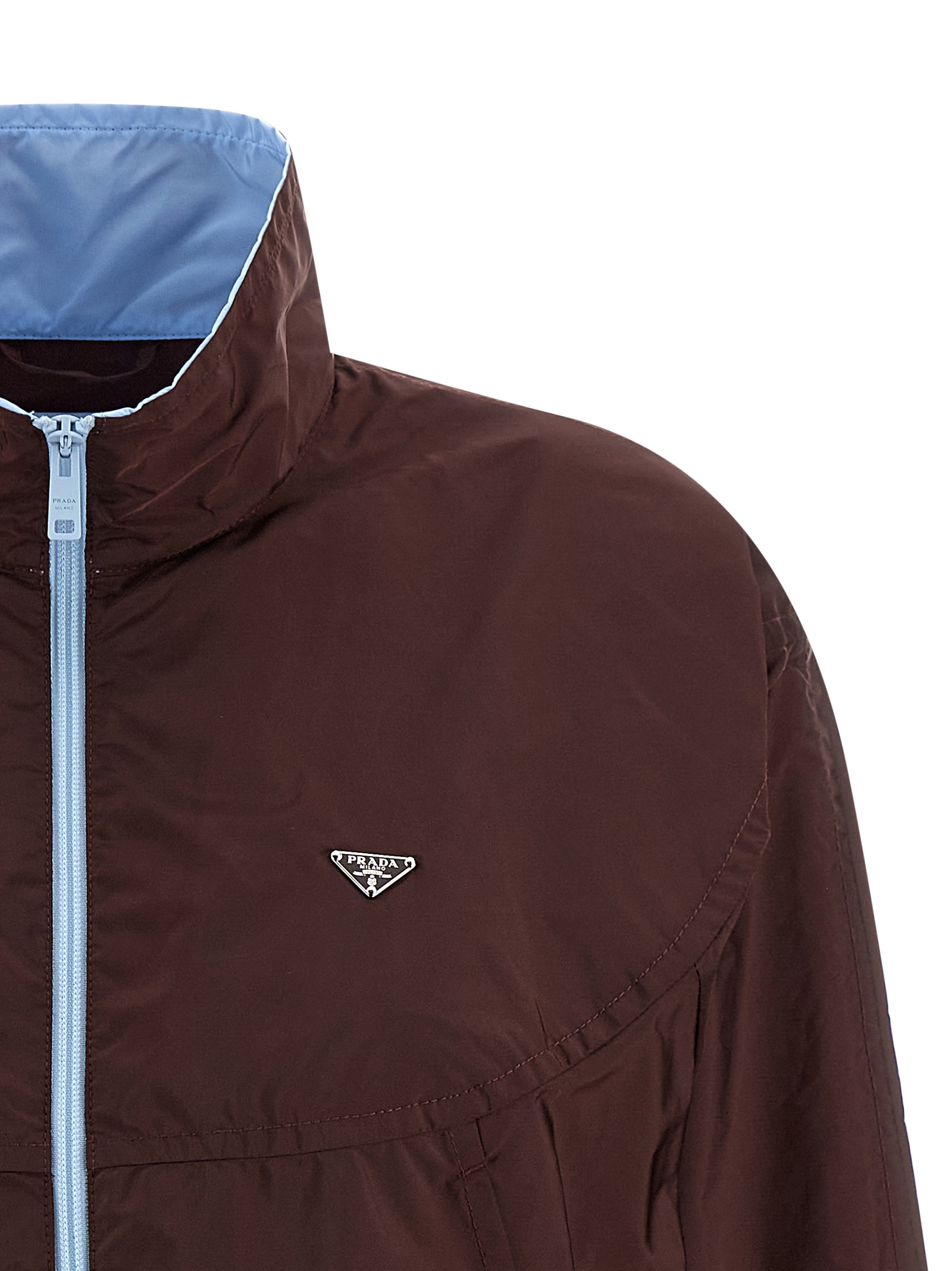 Re-Nylon blouson with triangle logo in enamelled metal and front zip closure, high neck with contrasting interior, pockets, drawstring at the waist, long sleeves with elastic cuffs, unlined. SUSTAINABLE: This product is made with Re-Nylon, a regenerated yarn made from recycled and purified plastic collected in oceans, fishery nets and textile fibers.Өнімнің ерекшеліктері