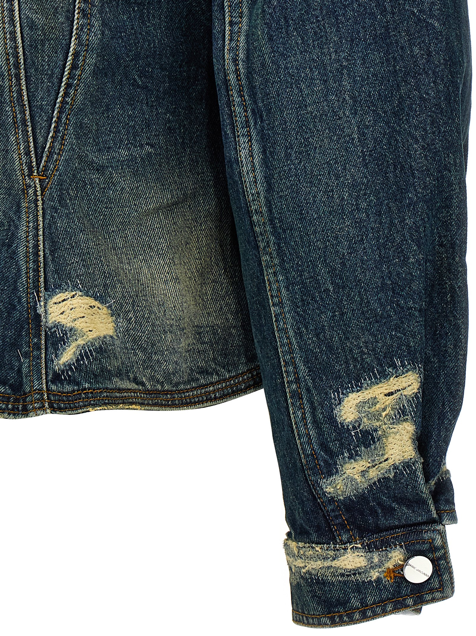 The Rip And Repair Fluted Denim Jacket' cotton denim jacket with all-over Rip and Repair effect, narrow waist and flared hem, button closure, pockets, back metal logo, long cuffed sleeves.Өнімнің ерекшеліктері