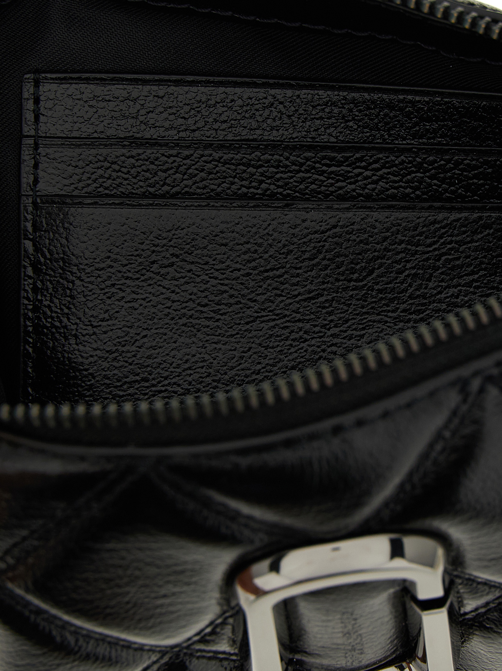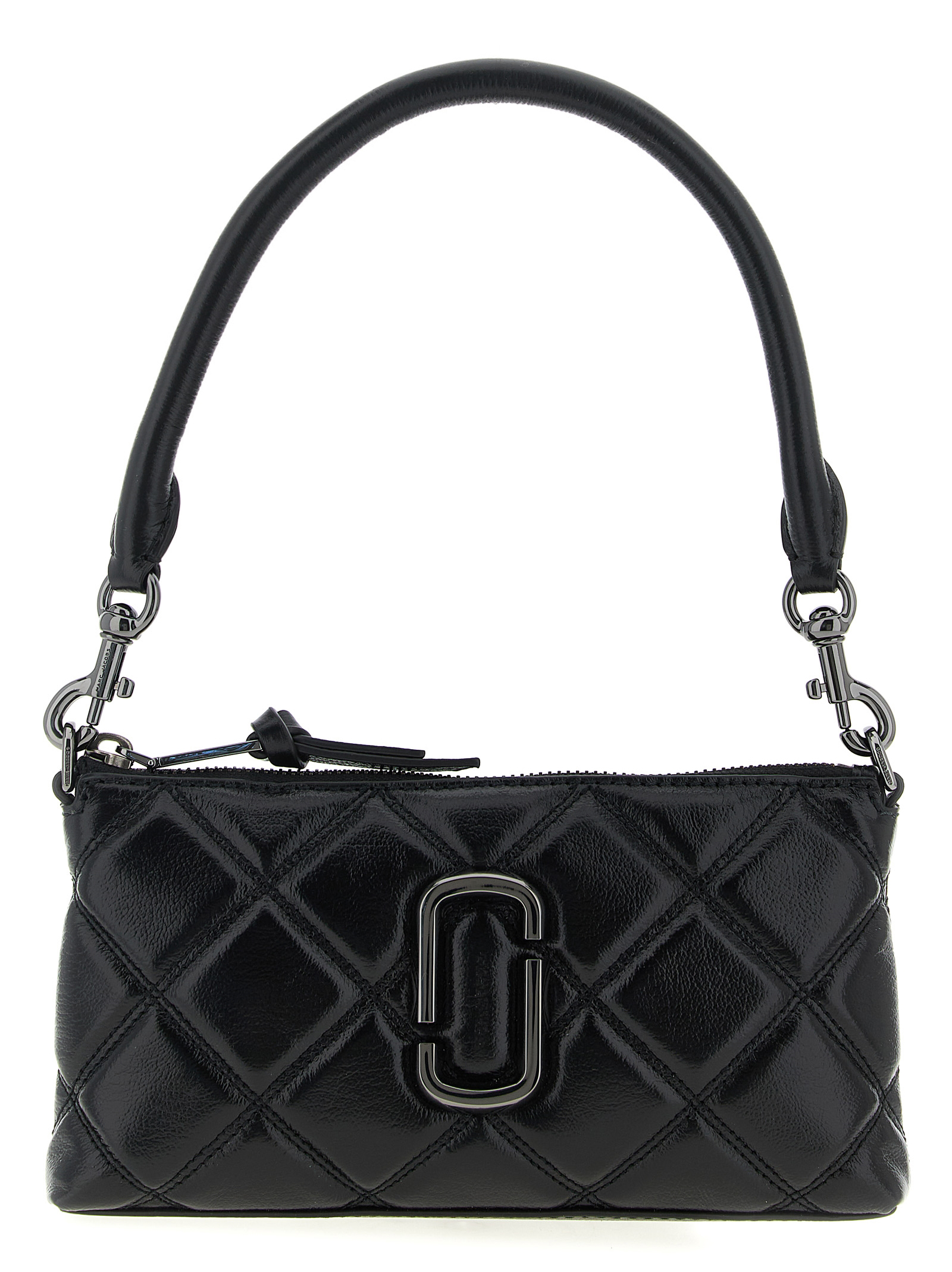 'The Quilted Snapshot Convertible' quilted leather shoulder bag, front tone-on-tone metal logo, top zip closure, removable handle, removable chain shoulder strap.