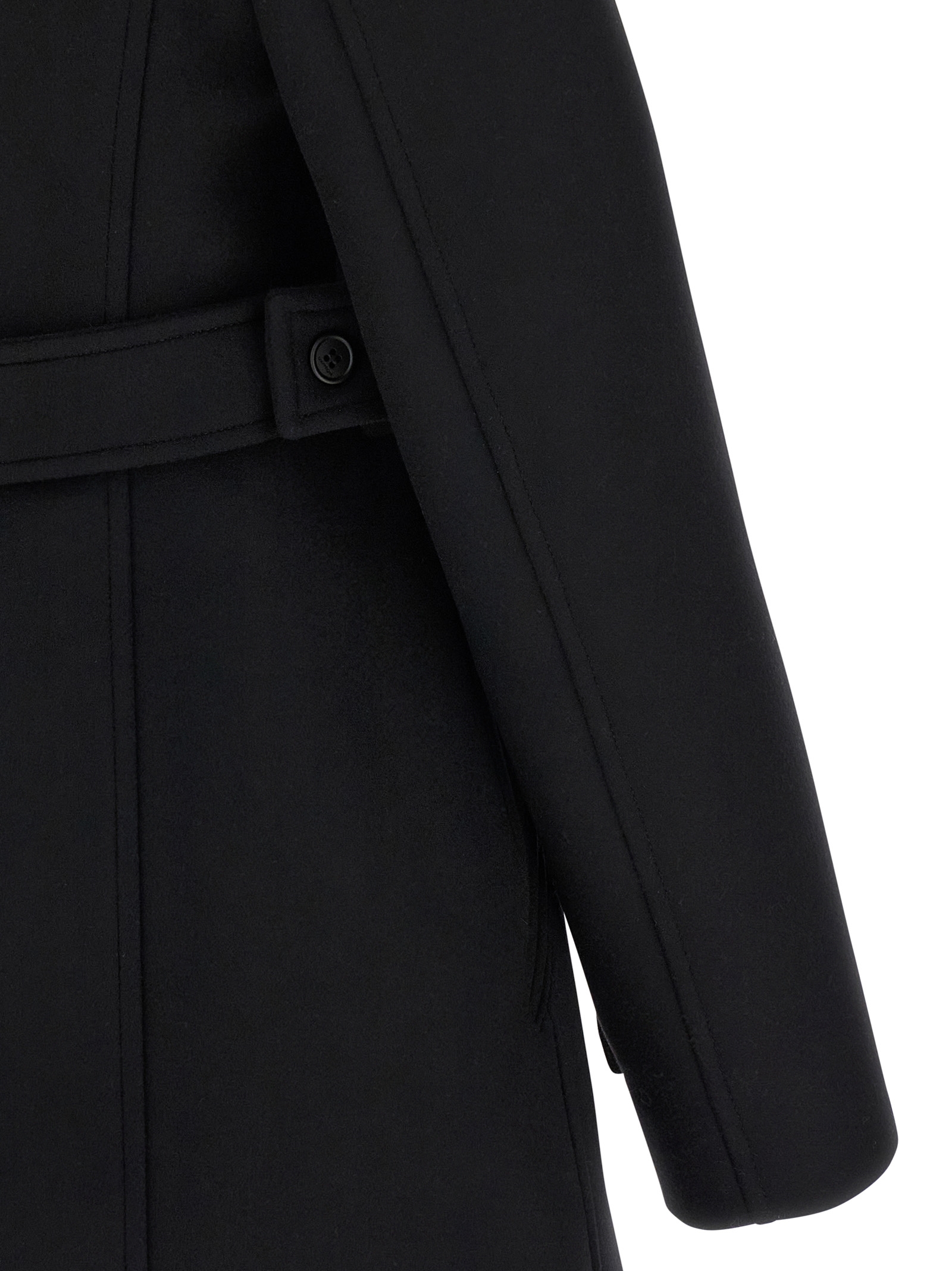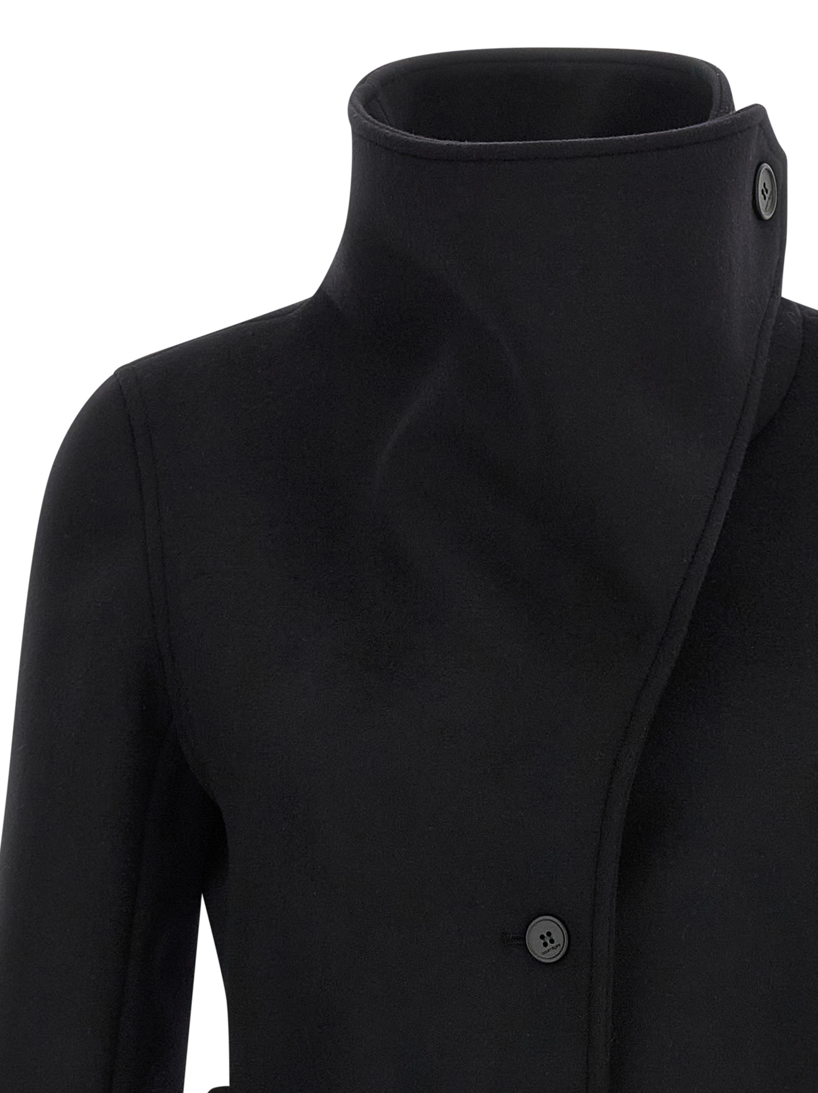 Heritage' wool and silk coat, high neck with side button closure, front button closure, pockets, long sleeves with zip on the cuffs, adjustable and removable back belt, lining.Өнімнің ерекшеліктері