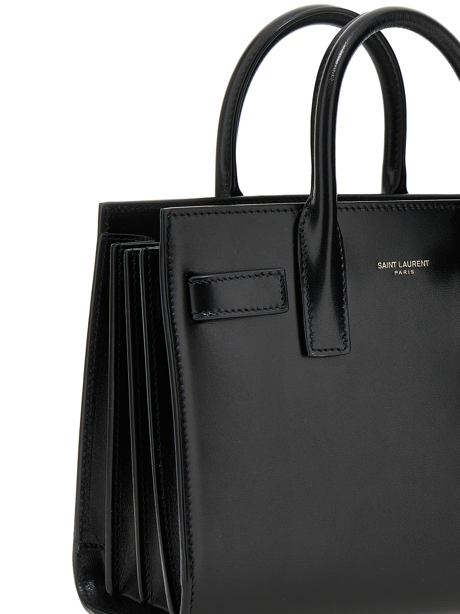 Nano 'Sac De Jour' smooth leather handbag, double leather handle, front logo print, adjustable and removable shoulder strap.