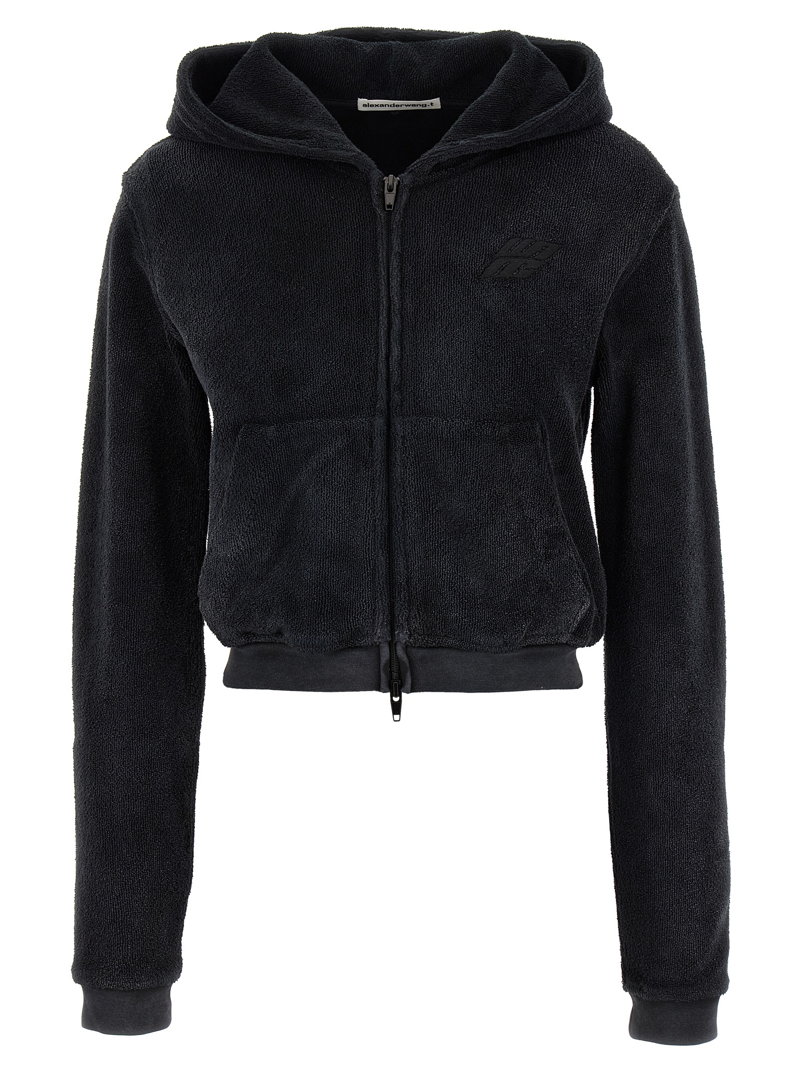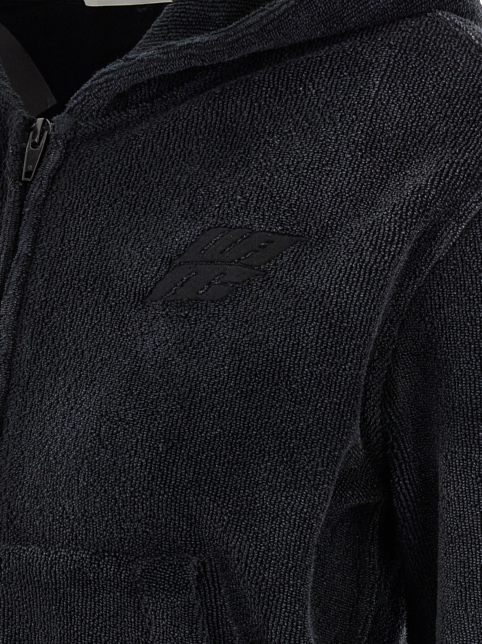 Terry hoodie with tone-on-tone logo embroidery and front zip closure, crop style, pockets, long sleeves with cuffs and dropped shoulders.