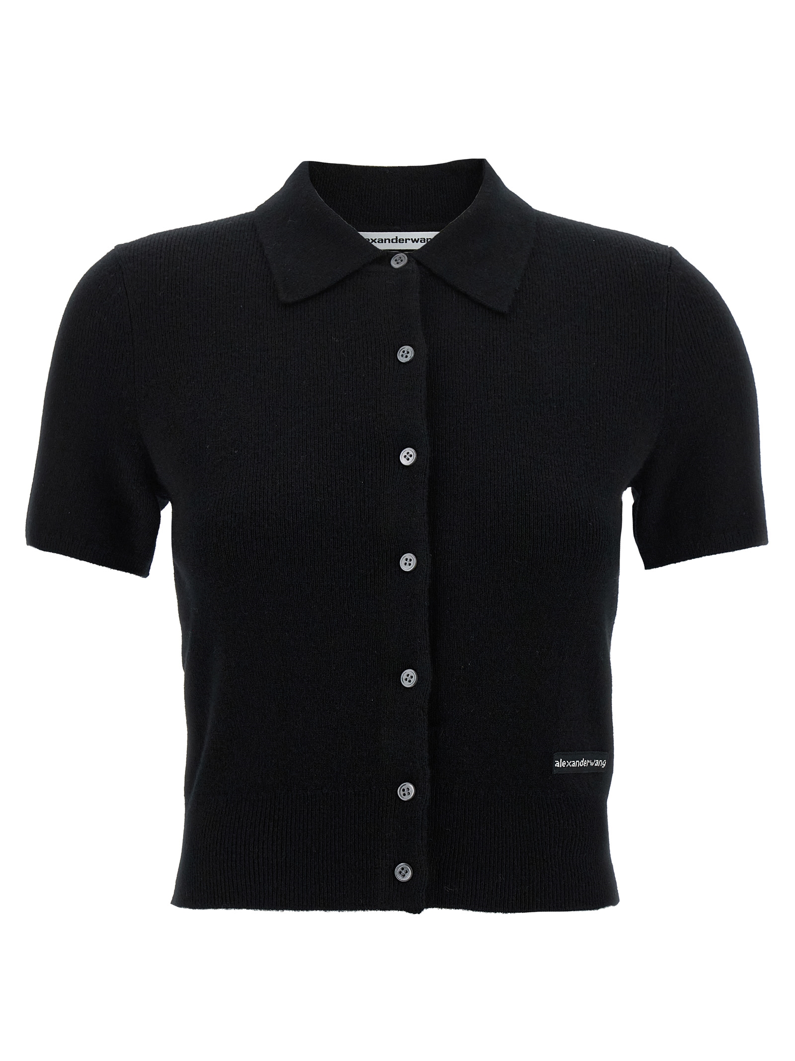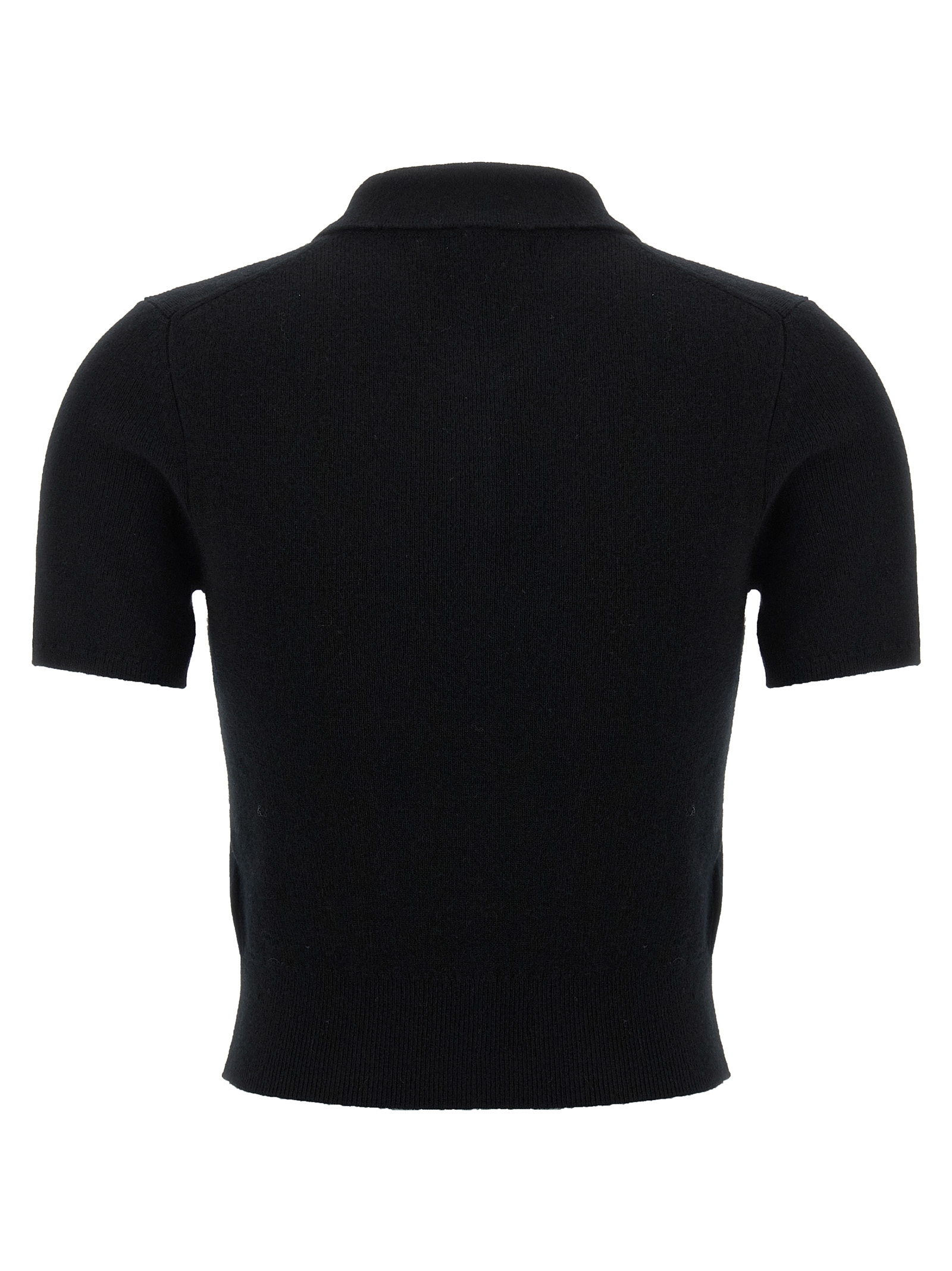 Wool cardigan, crop polo model with collar, logo patch and front button closure, short sleeves.Өнімнің ерекшеліктері