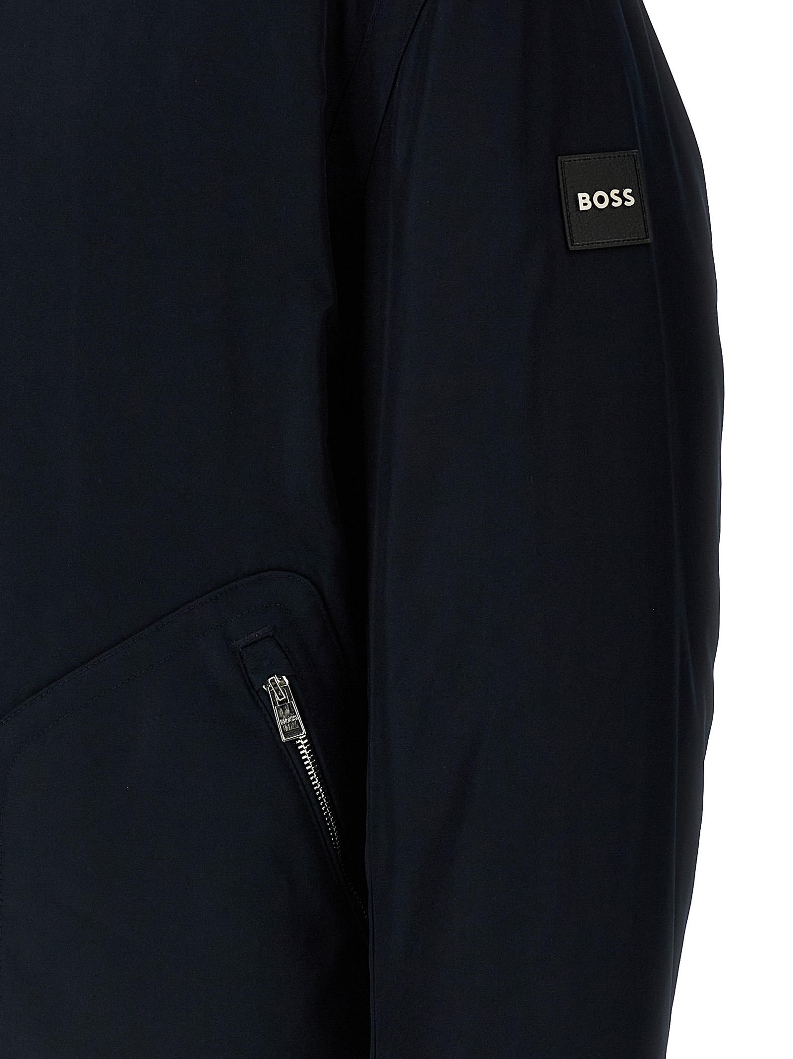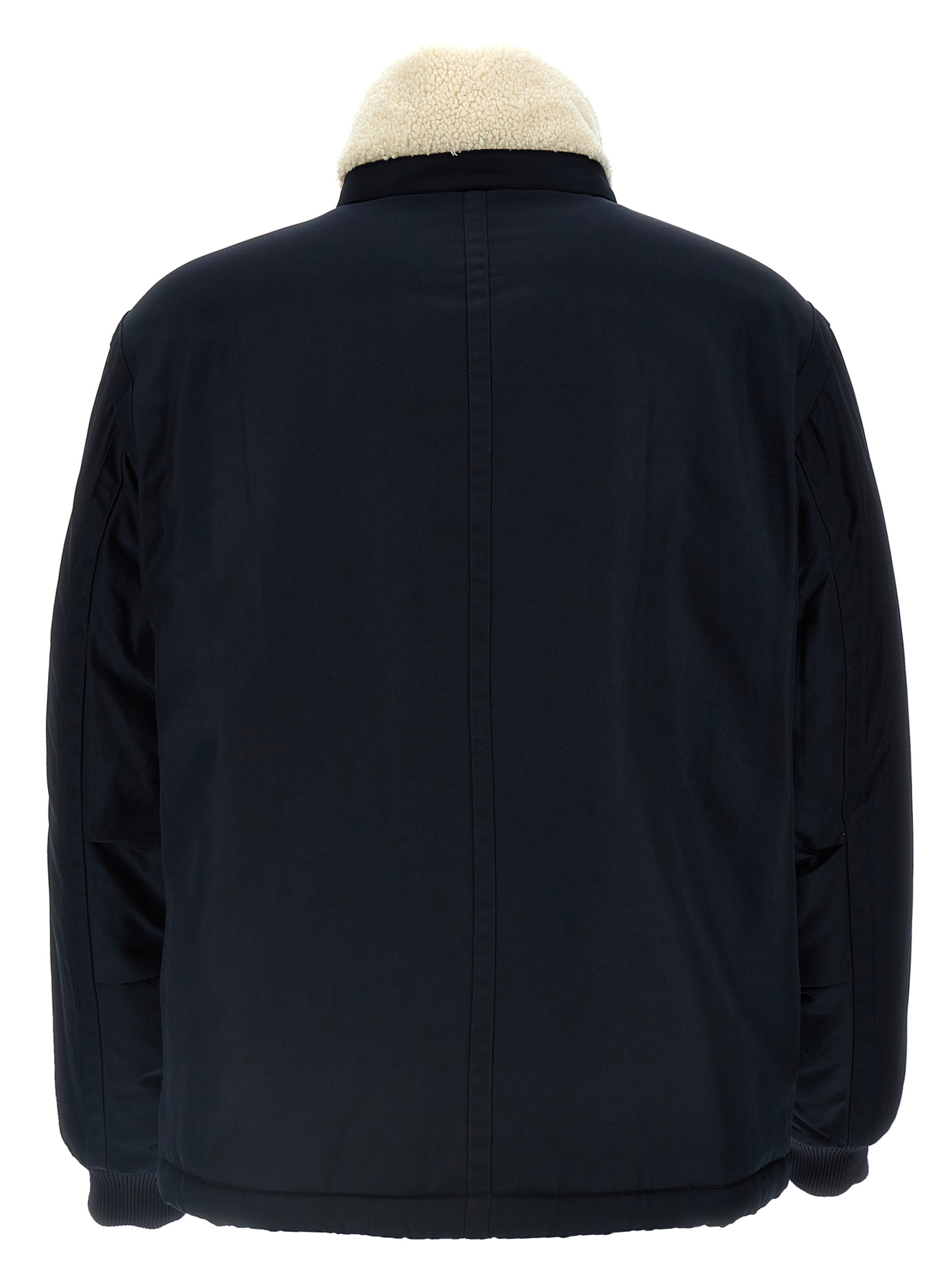 'H-Cemmi' jacket in water-repellent fabric with logo patch on the sleeve, standing collar lined with teddy-effect fabric, zip and button closure, pockets, long sleeves with knitted cuffs. SUSTAINABLE: Product made from recycled polyester.