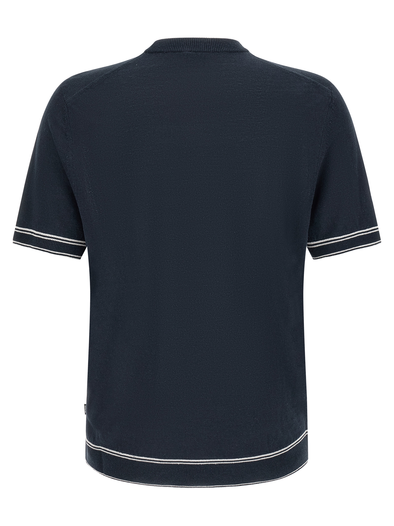 'H-Norberto' linen and viscose blend sweater with contrasting details in stretch ribbed knit, crew neck, short sleeves with cuffs, band on the hem.