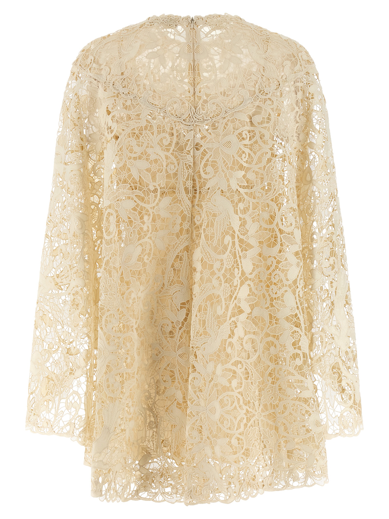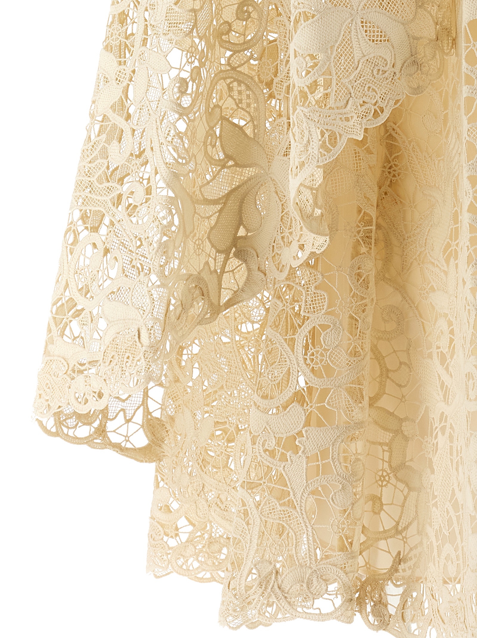 'Memento Bird Lace Mini' lace dress with round neckline, sleeveless with overlapping cape, side and back zip closure, removable petticoat with thin straps.Өнімнің ерекшеліктері