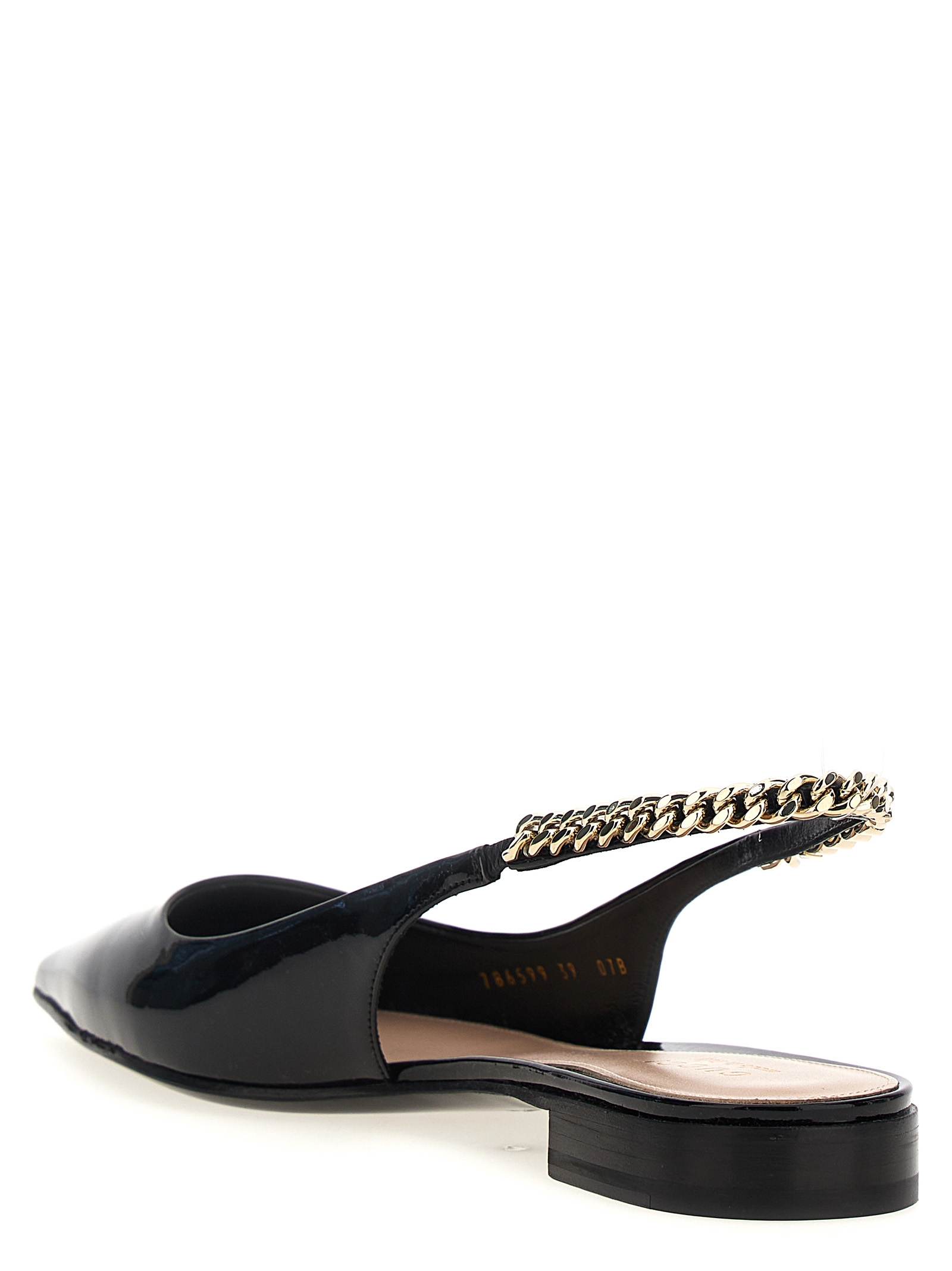 'Signoria' patent leather ballet flats with elastic strap with metal logo, leather sole.