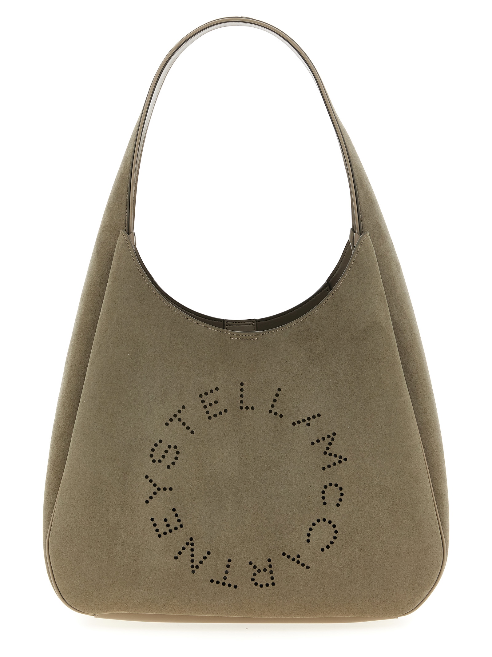 'Hobo' large shoulder bag in Alter Suede with front cut-out logo, fixed handle, magnetic closure.