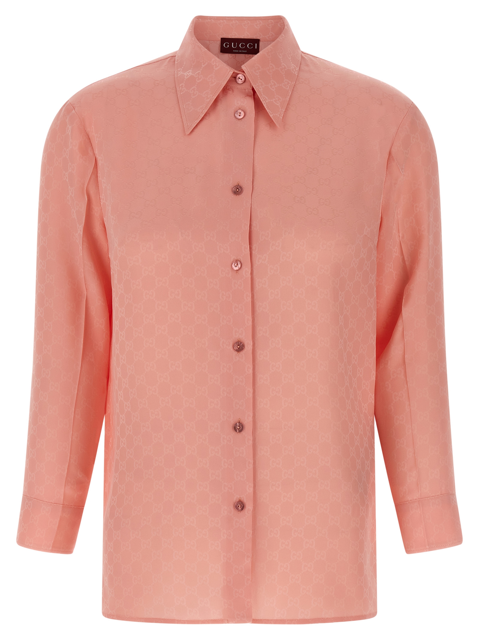 All-over GG knit silk shirt, collar, front button closure, long sleeves with cuffs.Өнімнің ерекшеліктері
