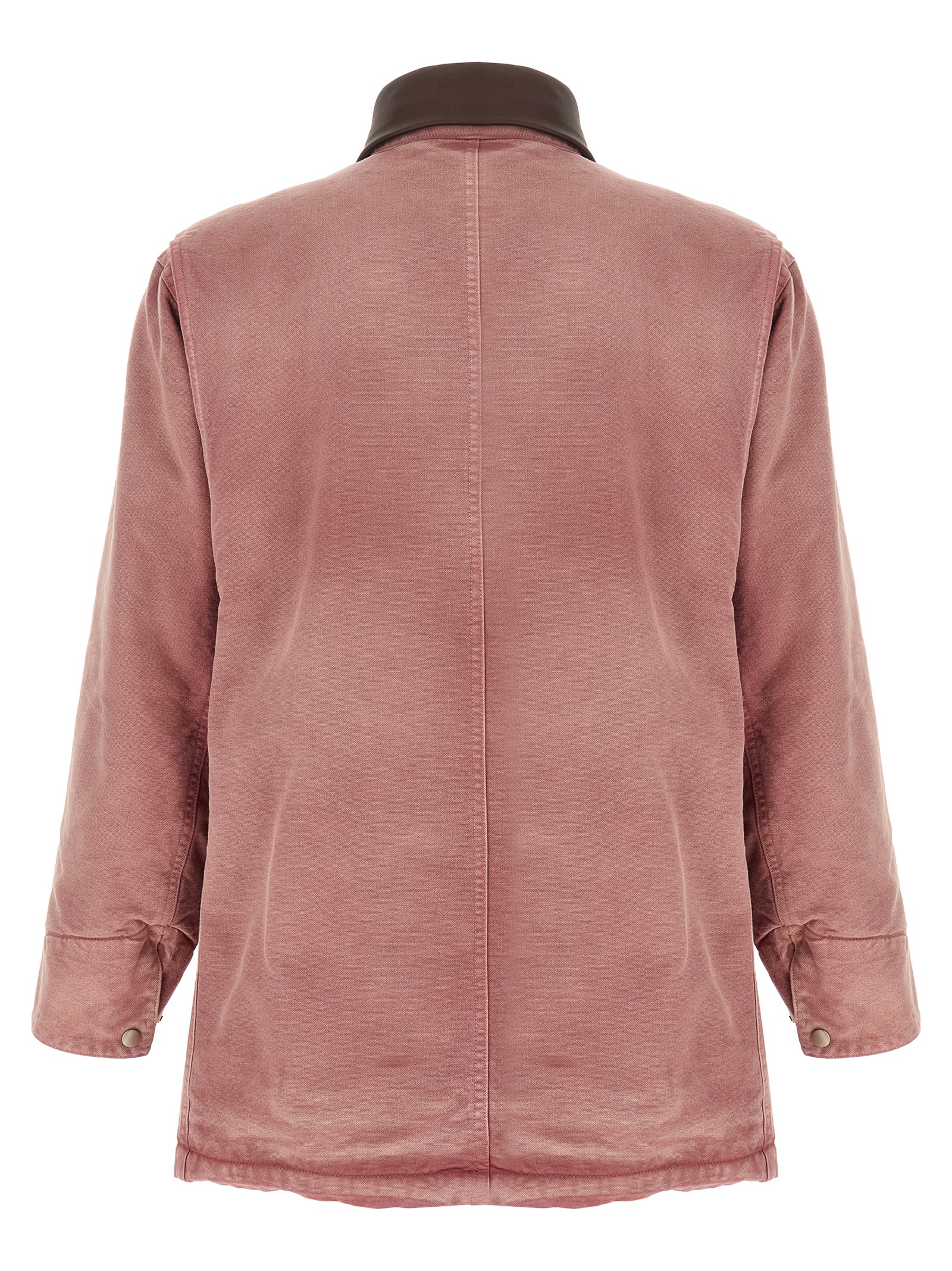 Duck cotton jacket densely woven with cotton yarns thick both in the warp and in the weft and dyed in vintage effect garment, tone-on-tone corduroy collar with removable contrast leather insert, zip and front snap button closure, pockets, long cuffed sleeves, fleece cotton lining. After dyeing the garment, each piece is carefully finished by hand to enhance its vintage appearance, giving each fabric a unique expression.Өнімнің ерекшеліктері
