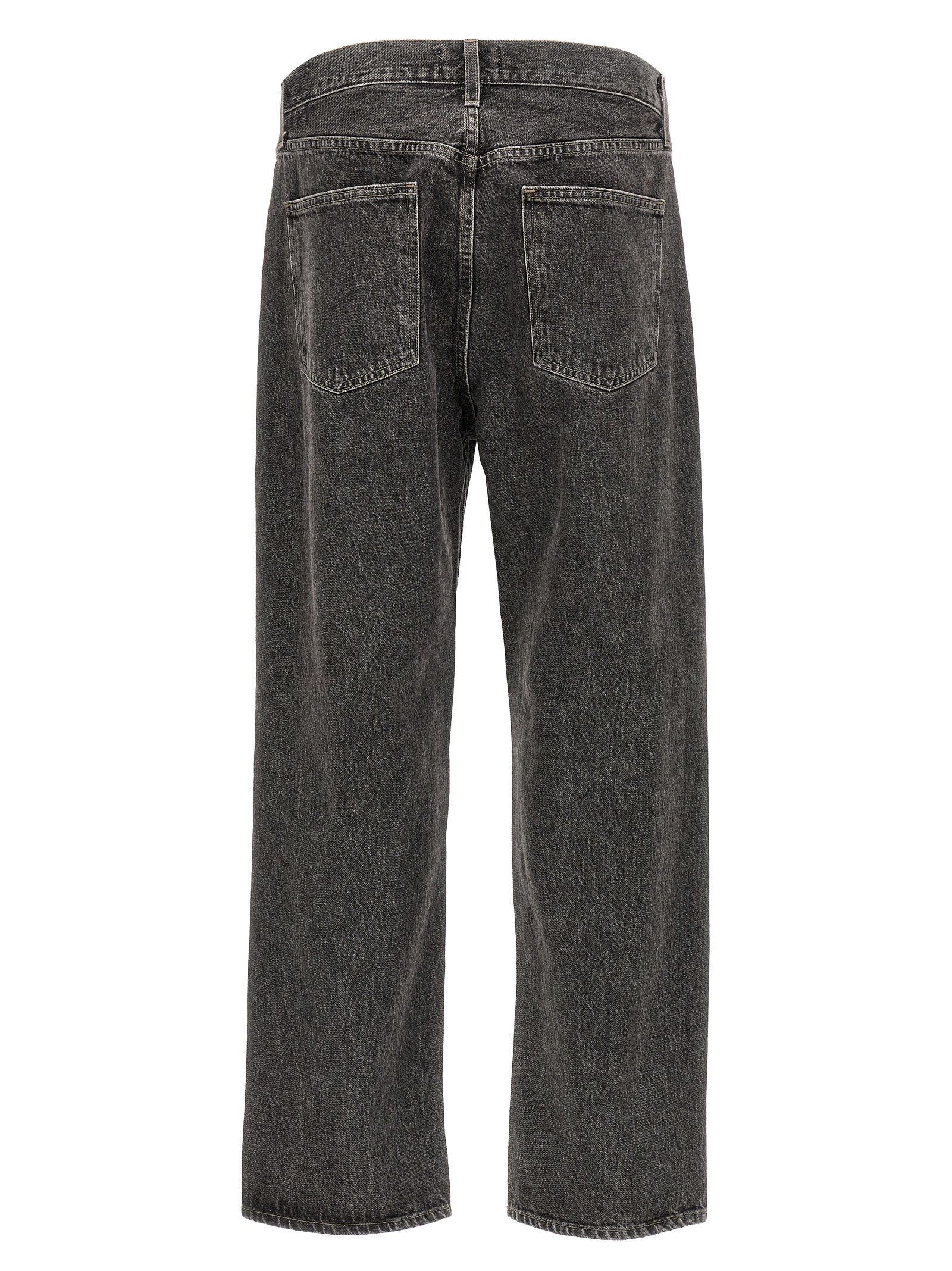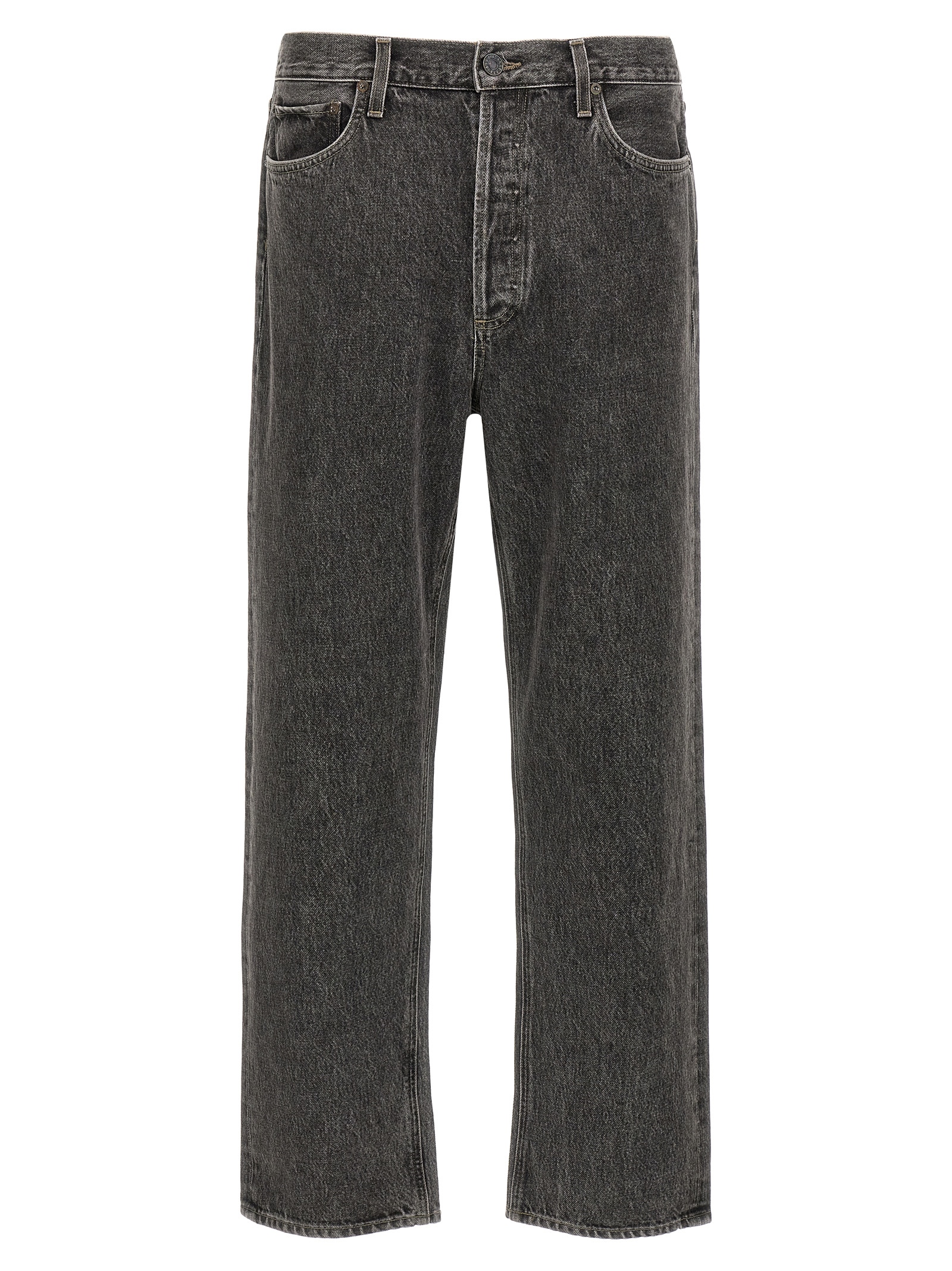 '90's' cotton denim jeans with button closure, five pockets, mid waist model, straight leg. SUSTAINABLE: This product is made of organic cotton.