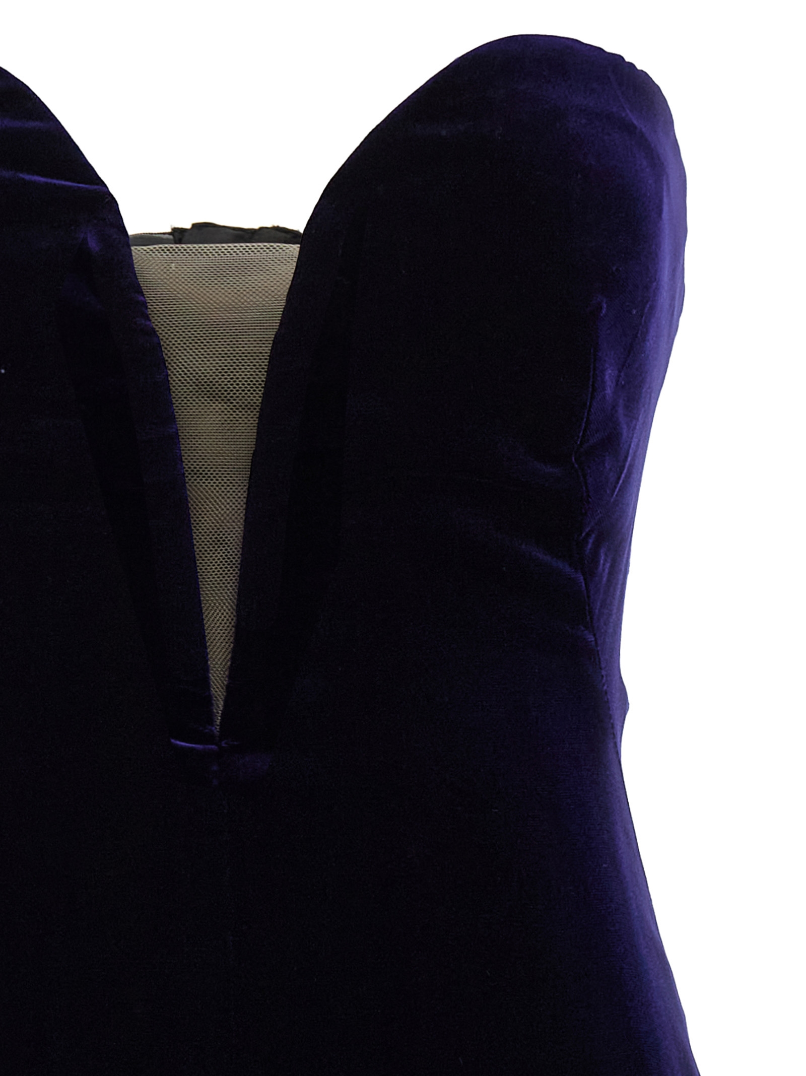 Off-the-shoulder Cocktail velvet midi dress with sweetheart neckline with contrasting tulle inverto, split and back zip closure, lining.