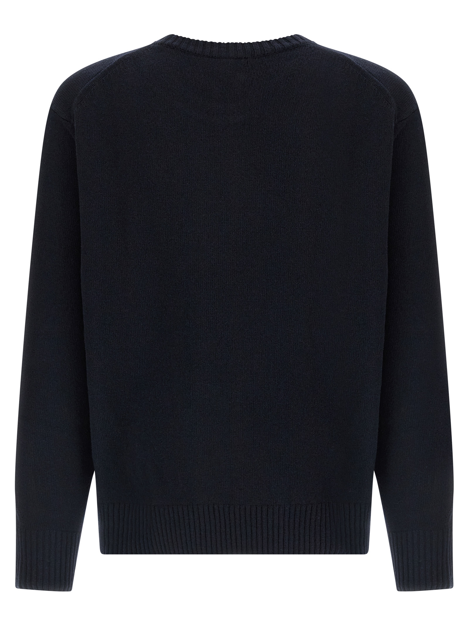 Carded wool jersey sweater with front logo patch, crew neck, long sleeves with cuffs and dropped ball.