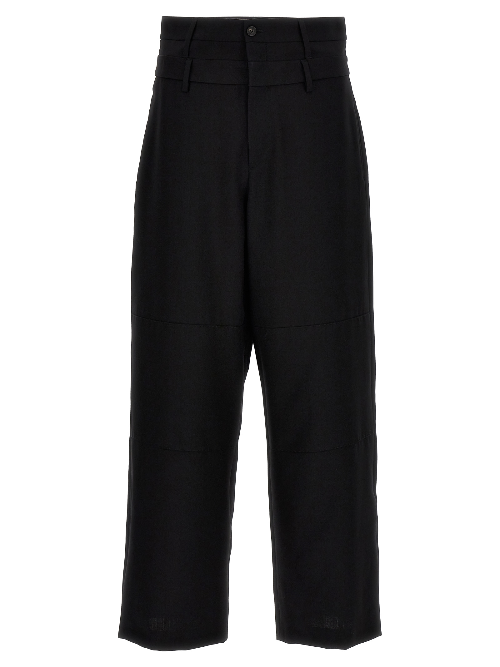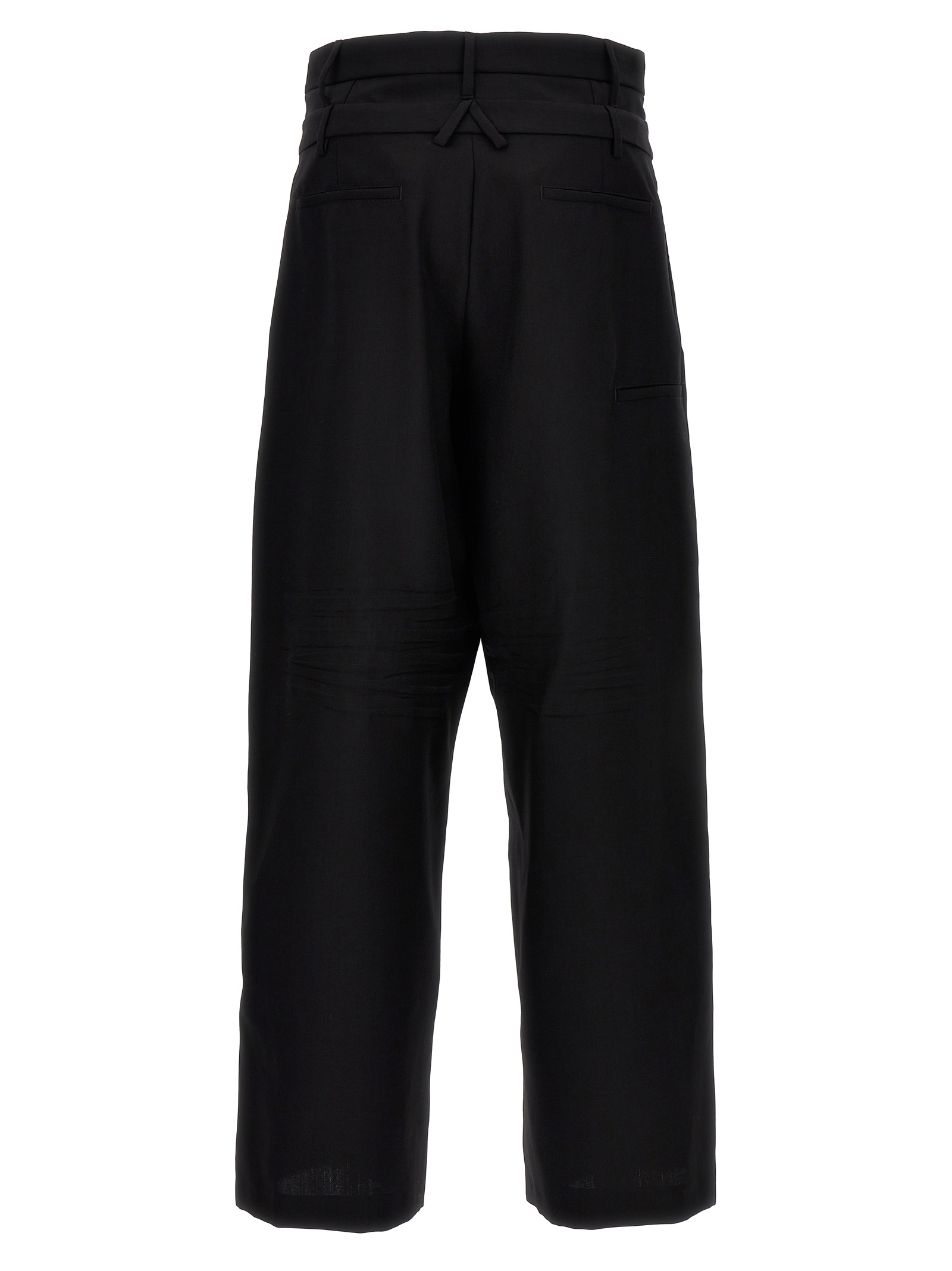 'Double Belted' wool pants with zip and button closure, pockets, wide leg with crinkled effect on the back.Өнімнің ерекшеліктері