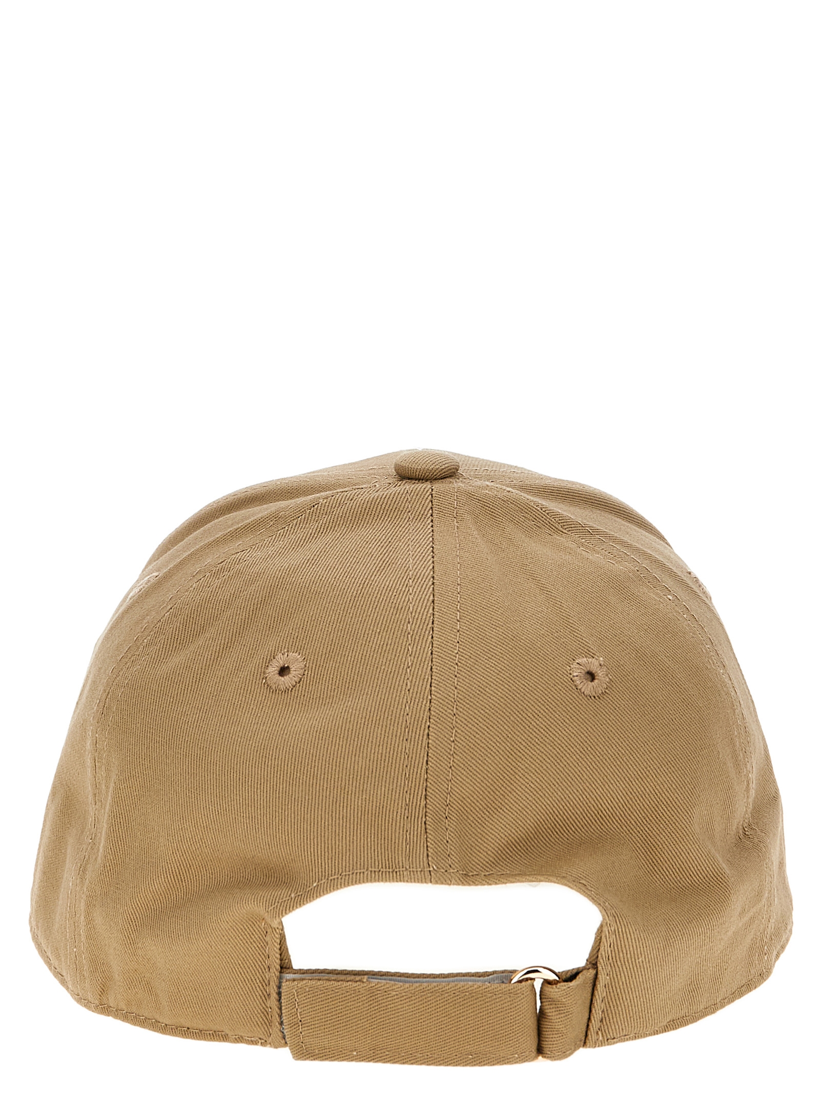 Cotton cap with contrasting embossed logo patch, adjustable back strap.