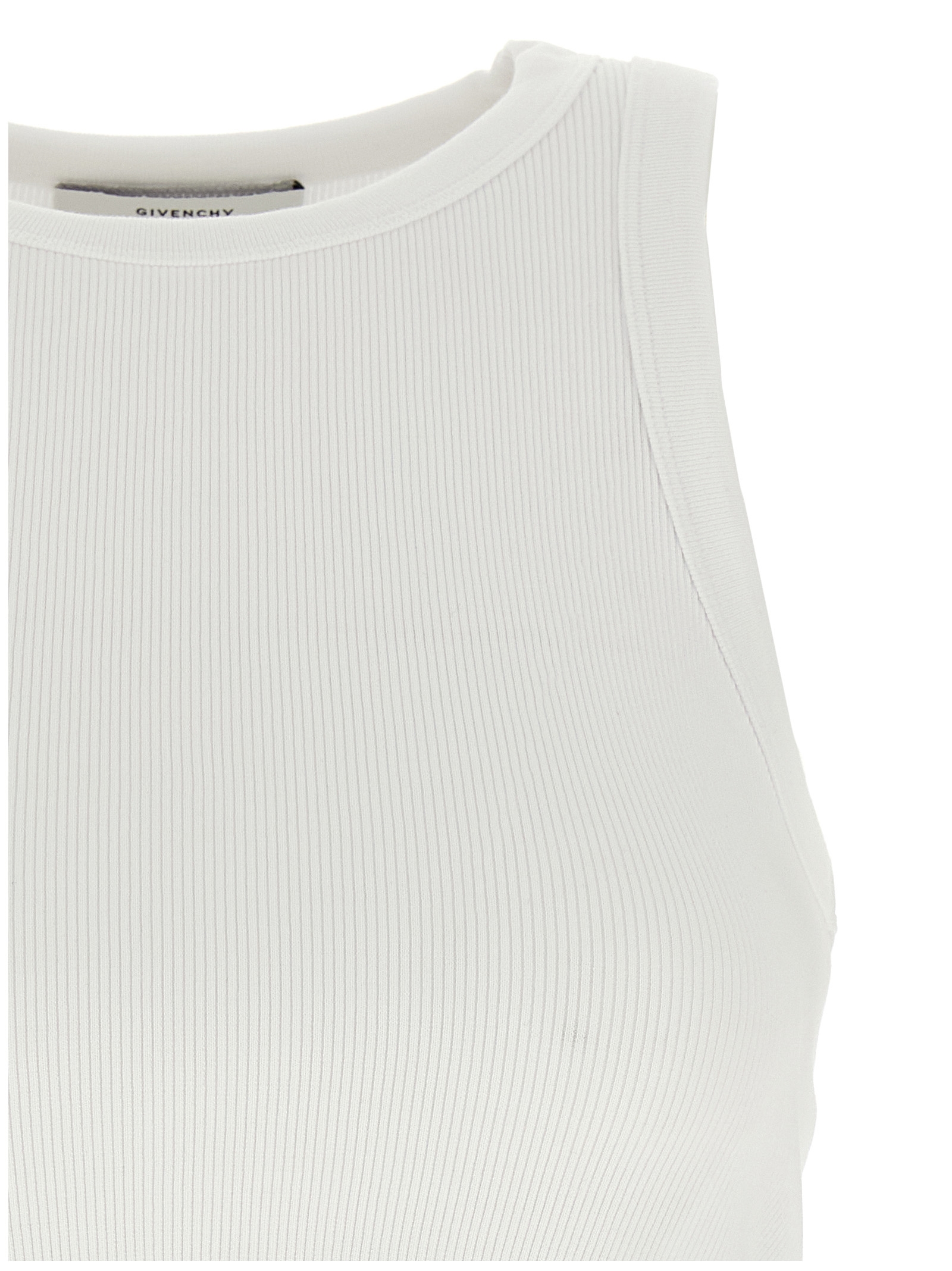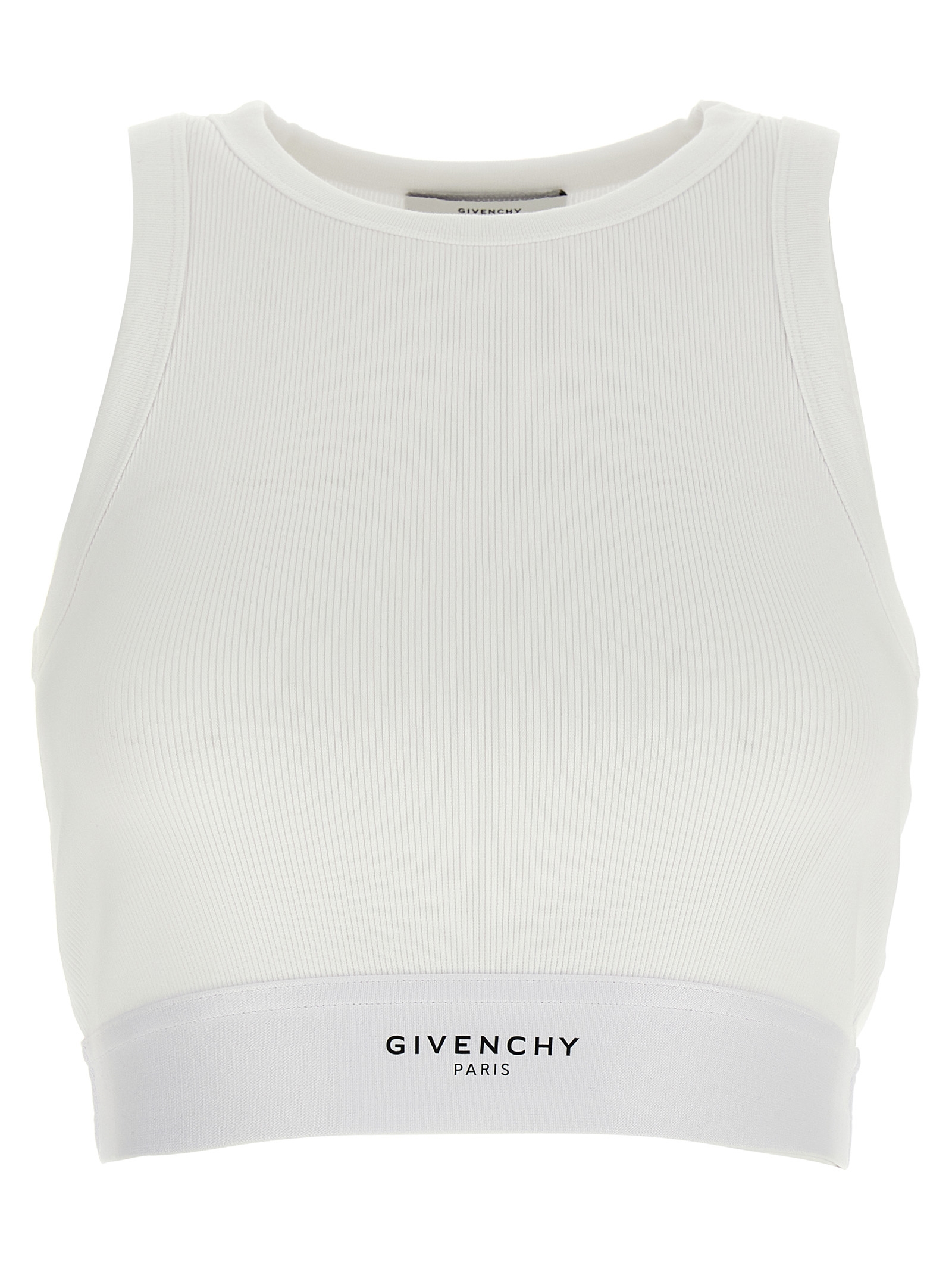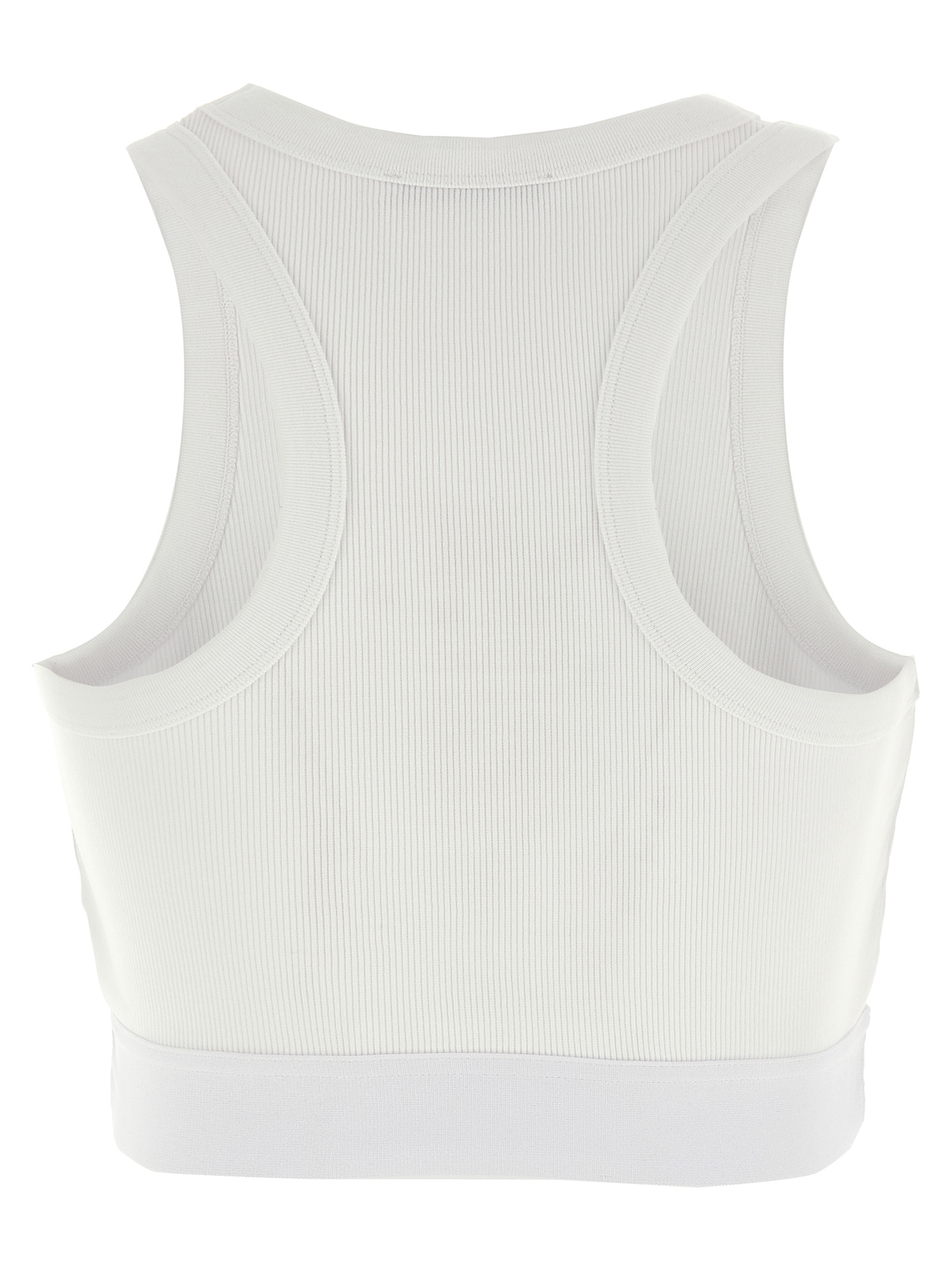 Micro ribbed cotton tank top, crop model, elastic band with logo print on the hem.