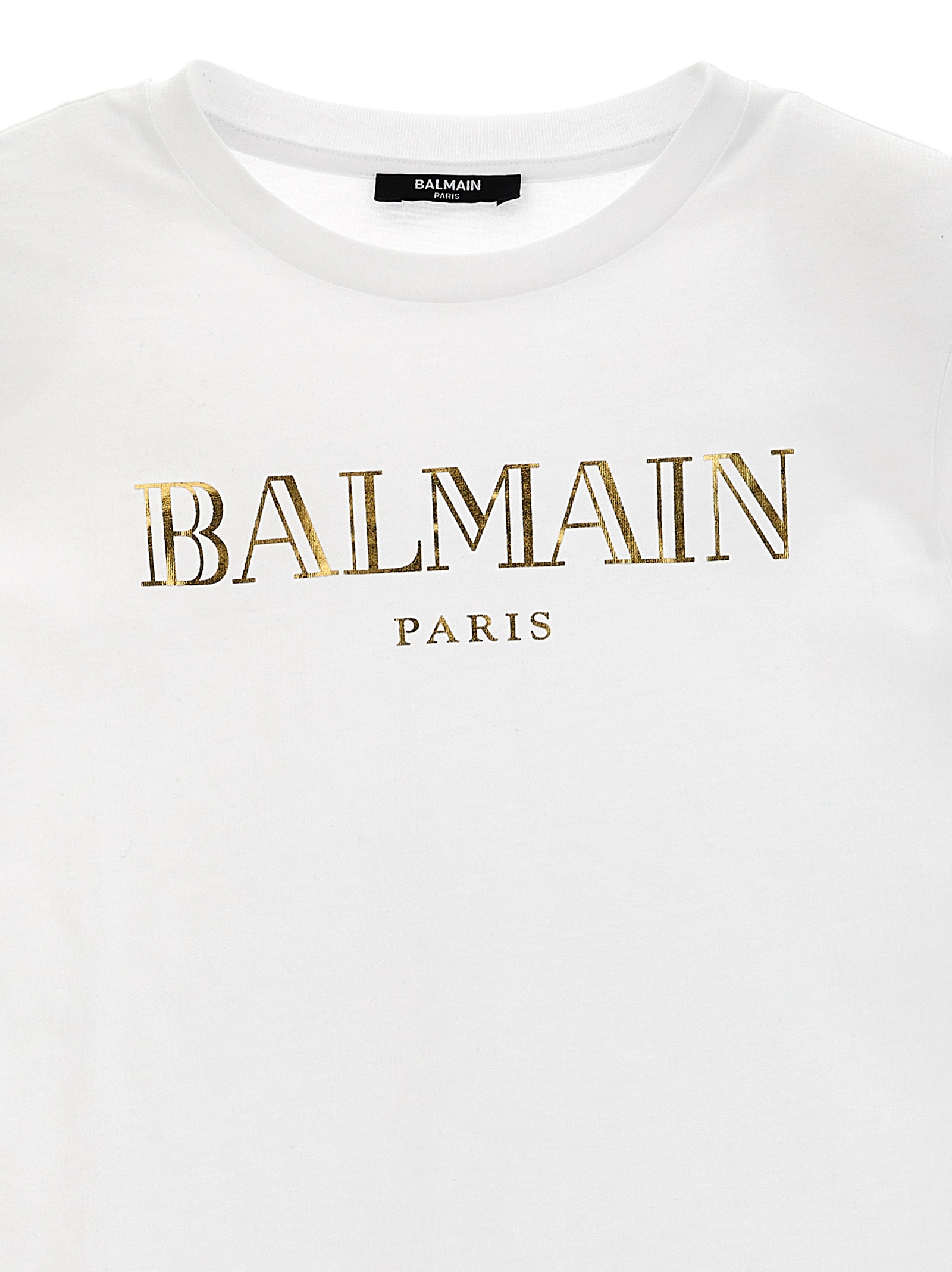 KIDS Cotton T-shirt with front logo print, crew neck, short sleeves with padded shoulders.Өнімнің ерекшеліктері