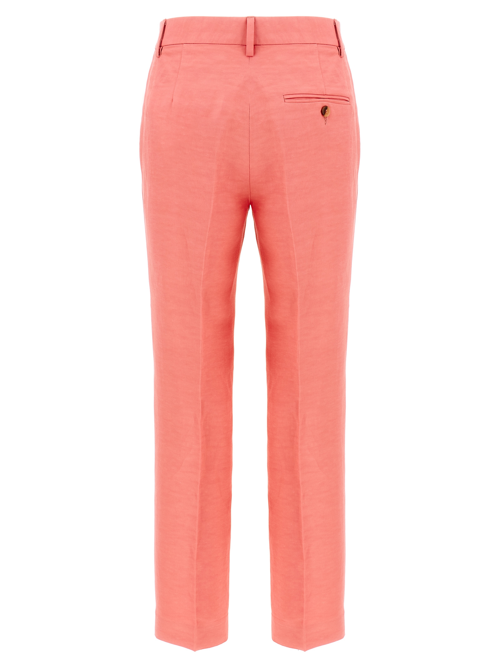 Chinos in linen blend, straight leg with front stretched pleat, zip and button hook closure, side pockets.