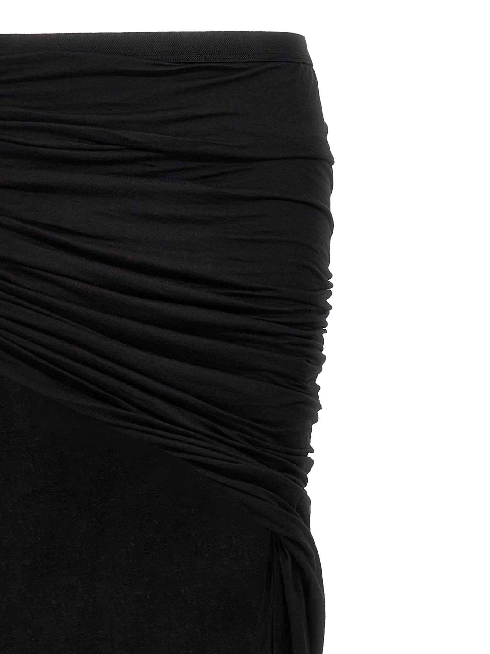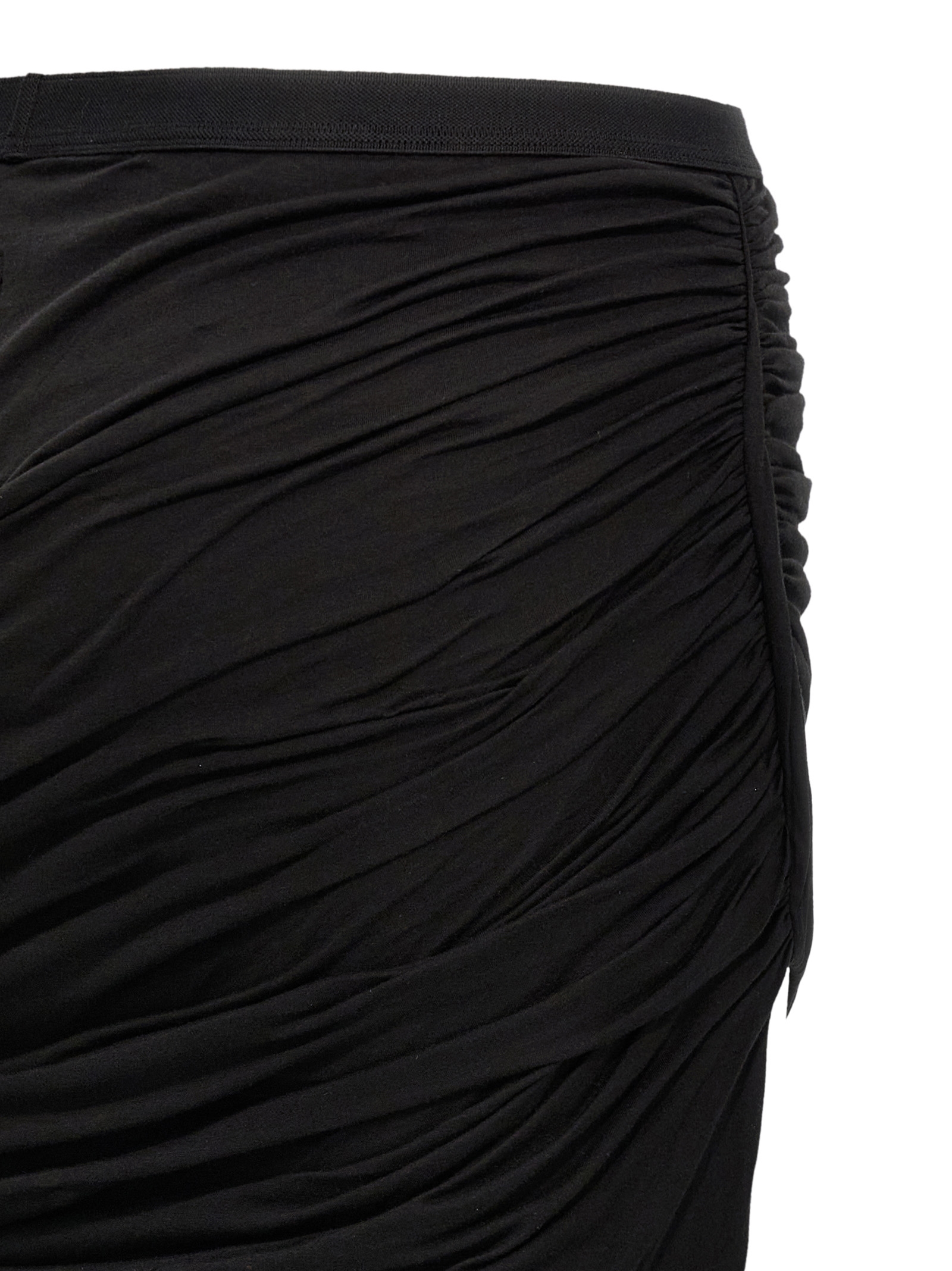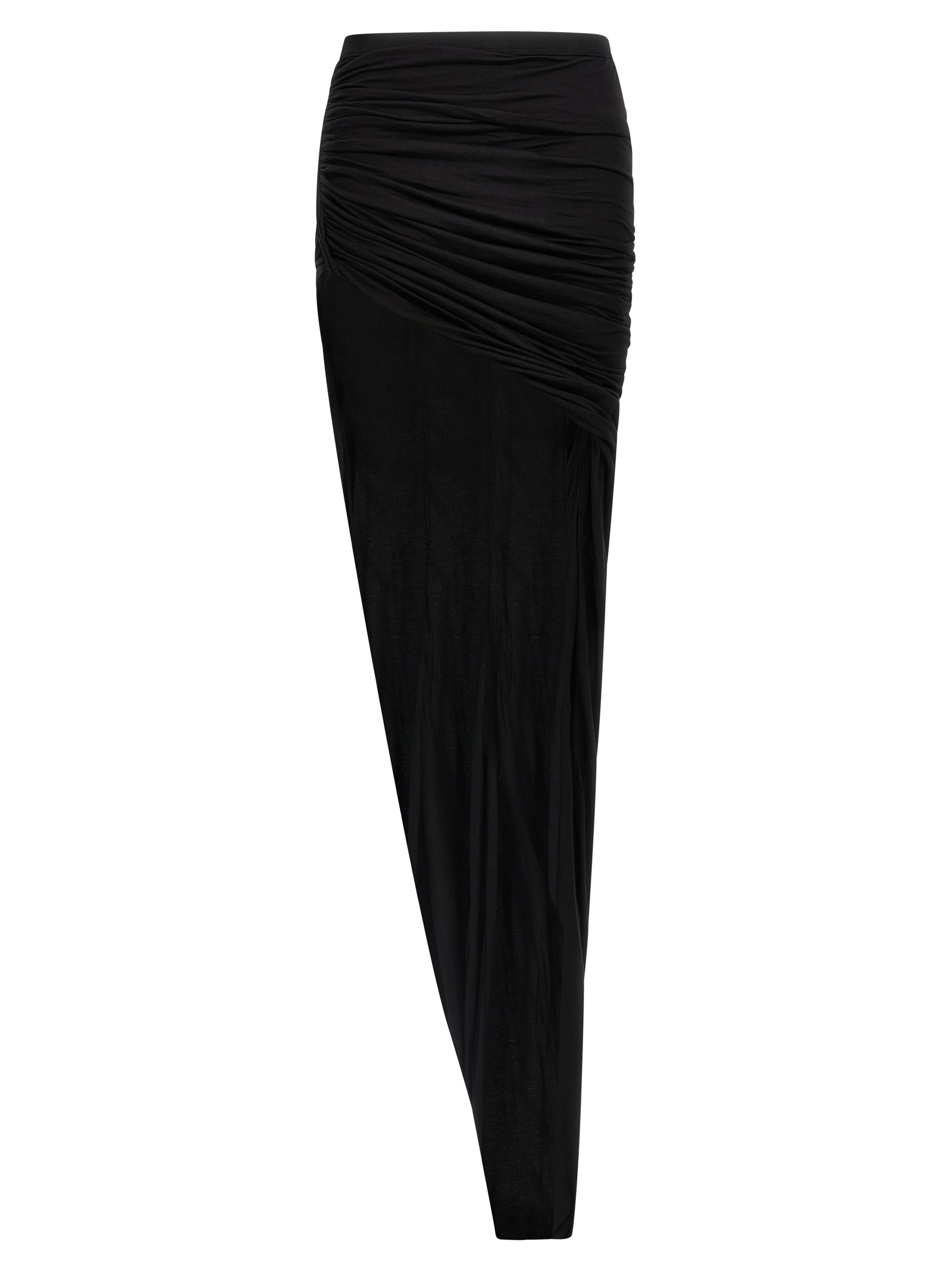 Mini 'Soft Edfu' skirt in double layer cotton with front drapes and long train, elastic waistband.