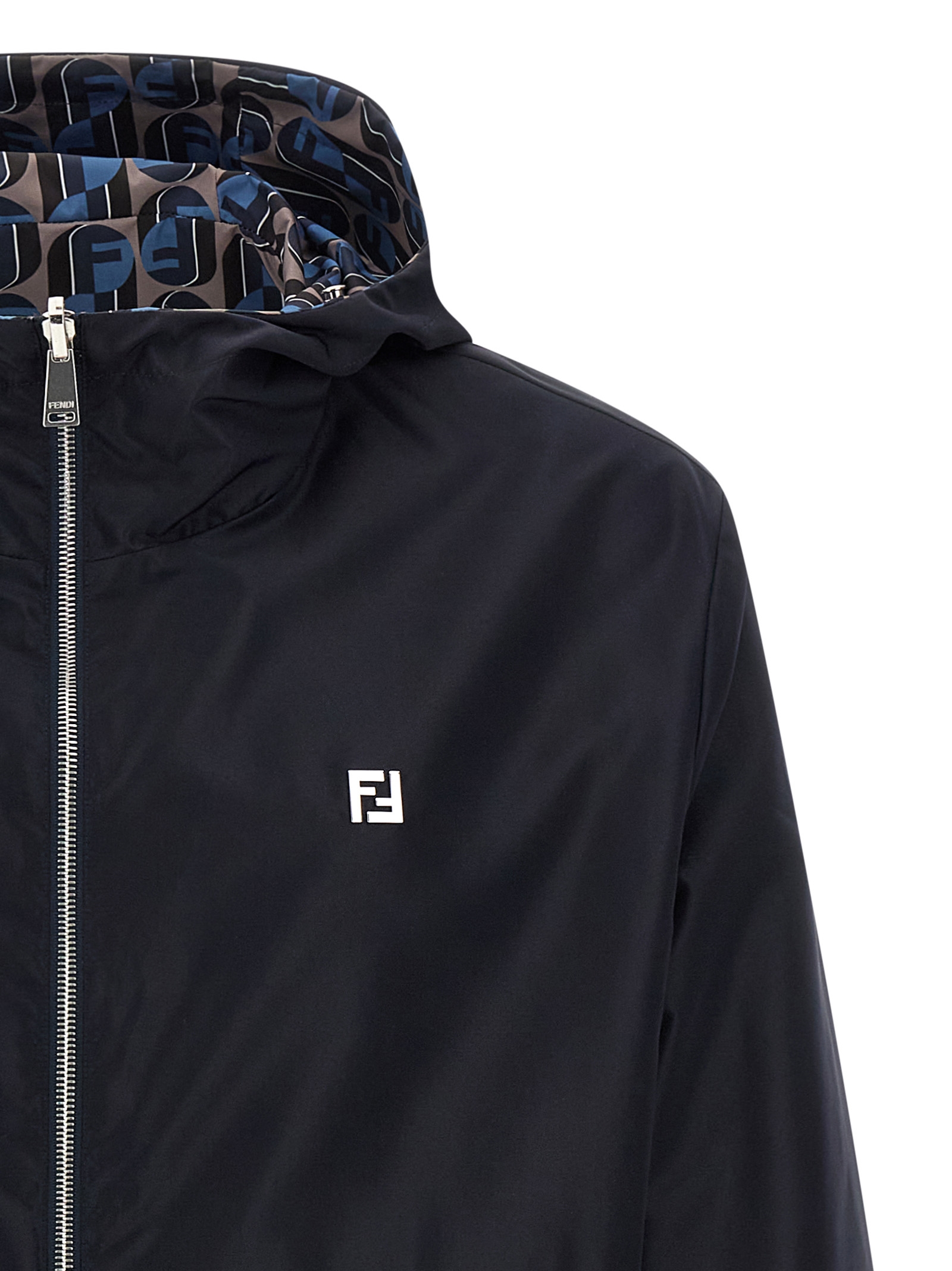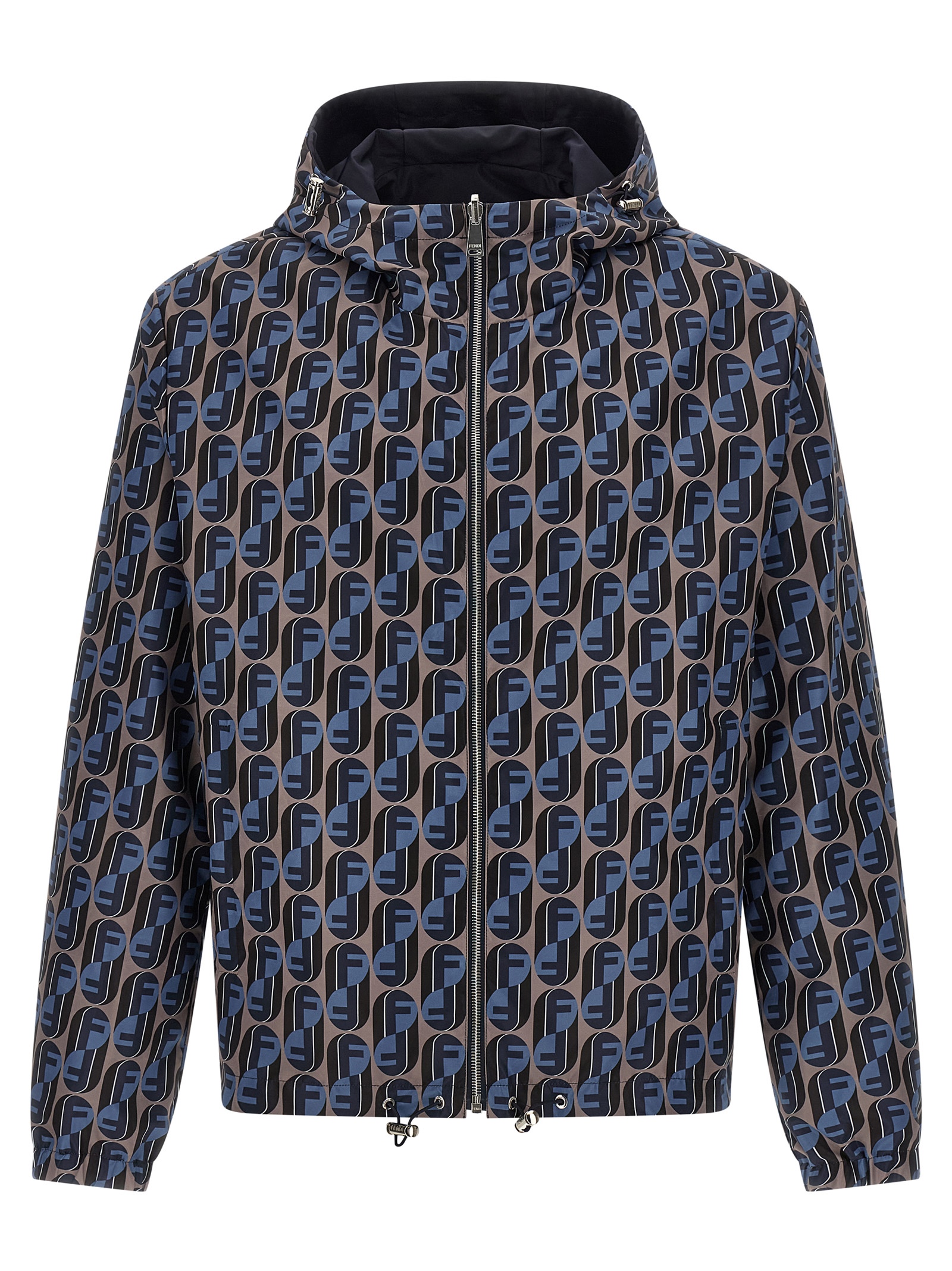 Reversible windbreaker in technical fabric with 'Fendinity' print and solid color, adjustable hood, metal logo and front zip closure, pockets, long sleeves with elastic cuffs, drawstring on the hem.Өнімнің ерекшеліктері