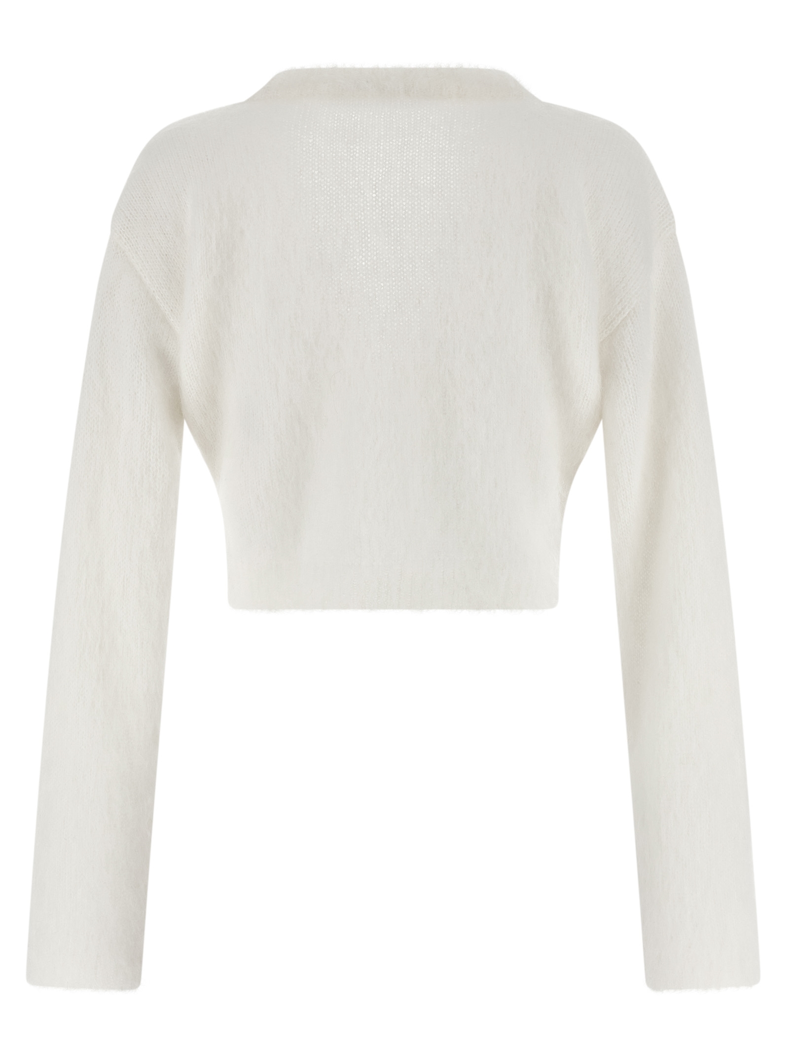 Carded Mohair' cardigan in alpaca and wool blend with embroidery and cut-out details, crop model, V-neck, front button closure, long sleeves.Өнімнің ерекшеліктері