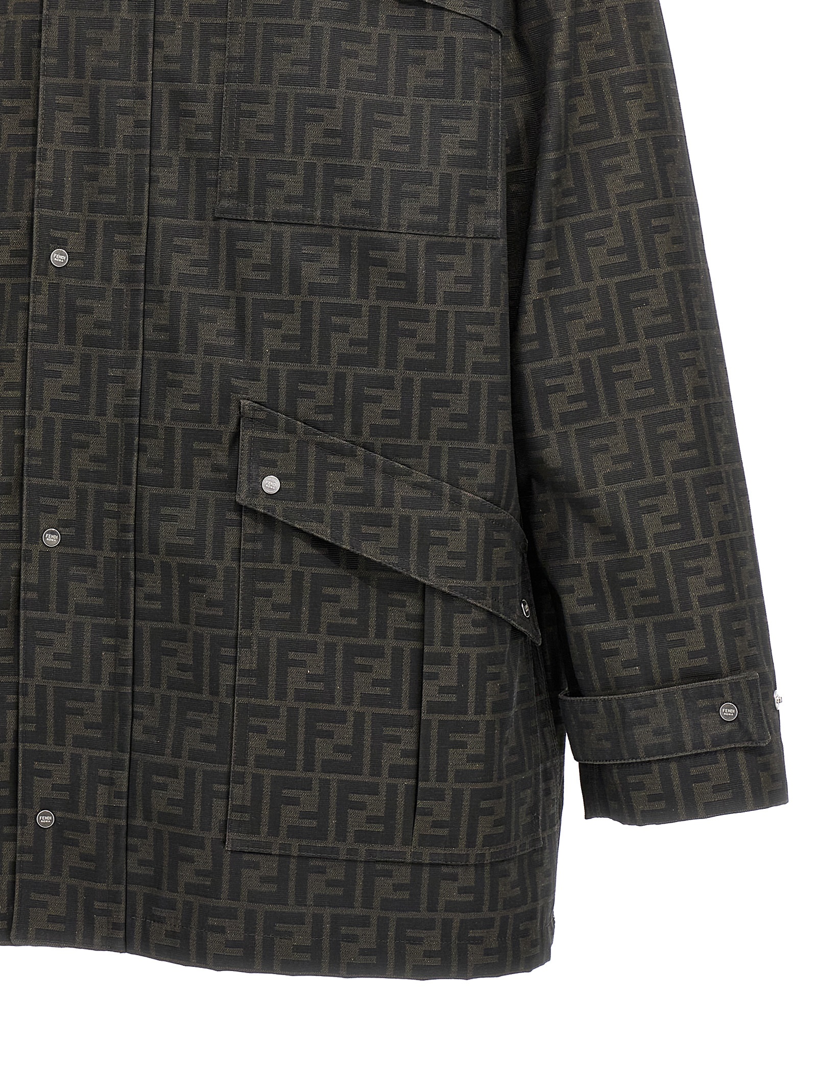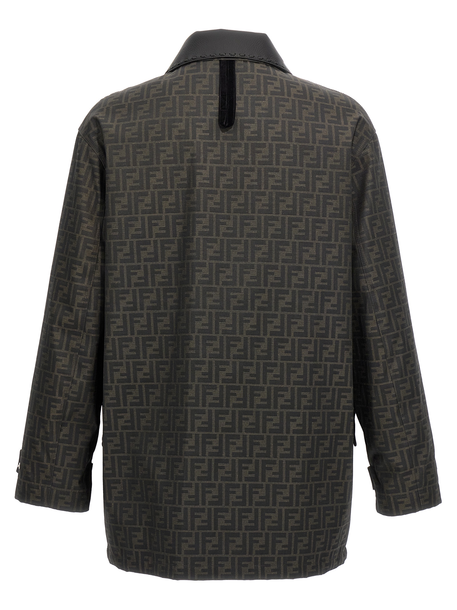 Waxed fabric jacket with all-over jacquard 'FF' logo, pockets, deer leather collar, long sleeves.Өнімнің ерекшеліктері