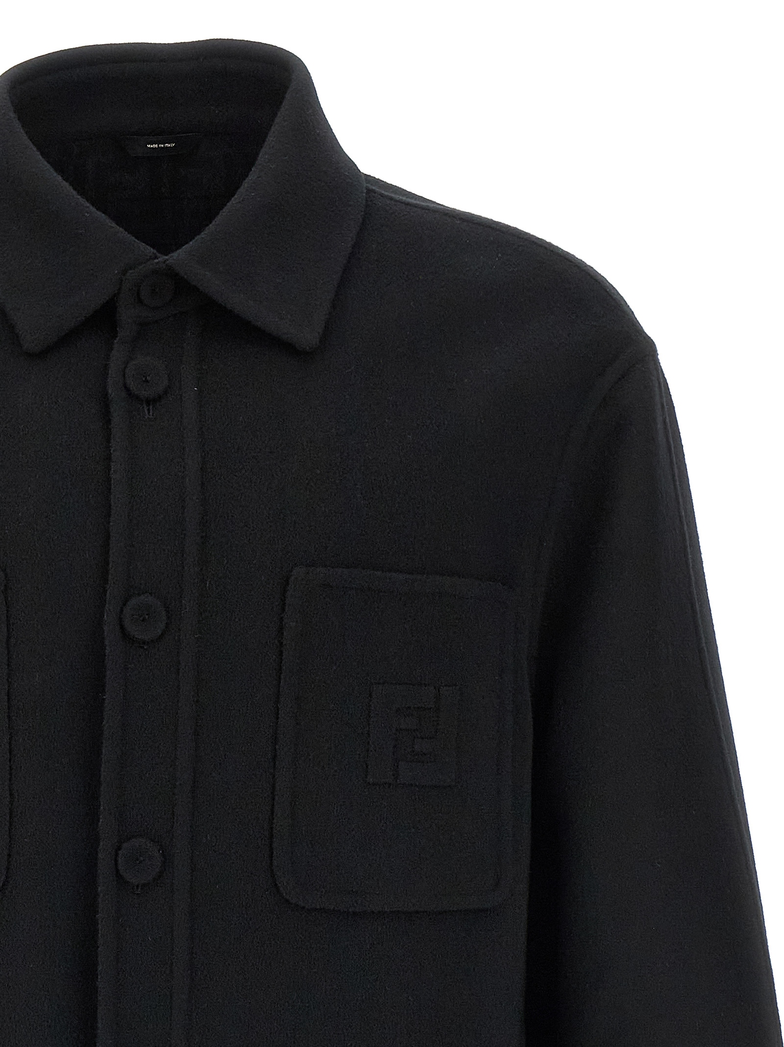 Wool overshirt, shirt collar, front pockets with tone-on-tone logo patch, front button closure, long sleeves with cuffs and buttons.Өнімнің ерекшеліктері