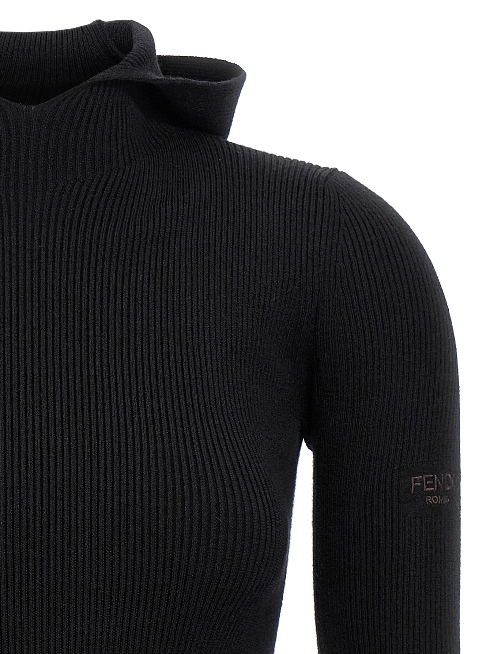 Ribbed wool and silk hooded dress with long sleeves and slits.Өнімнің ерекшеліктері