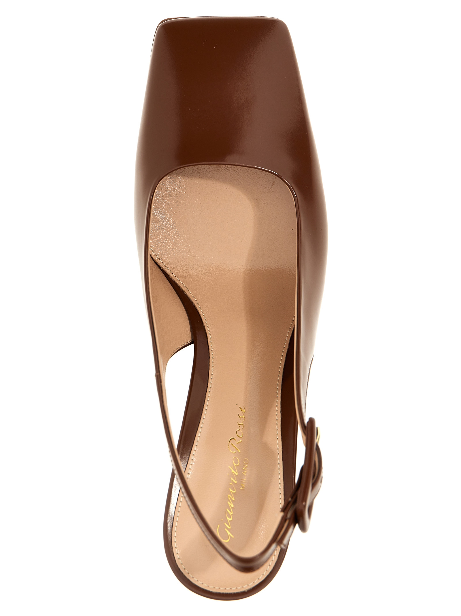 'Ric' leather slingbacks with square toe, adjustable strap, low heel.