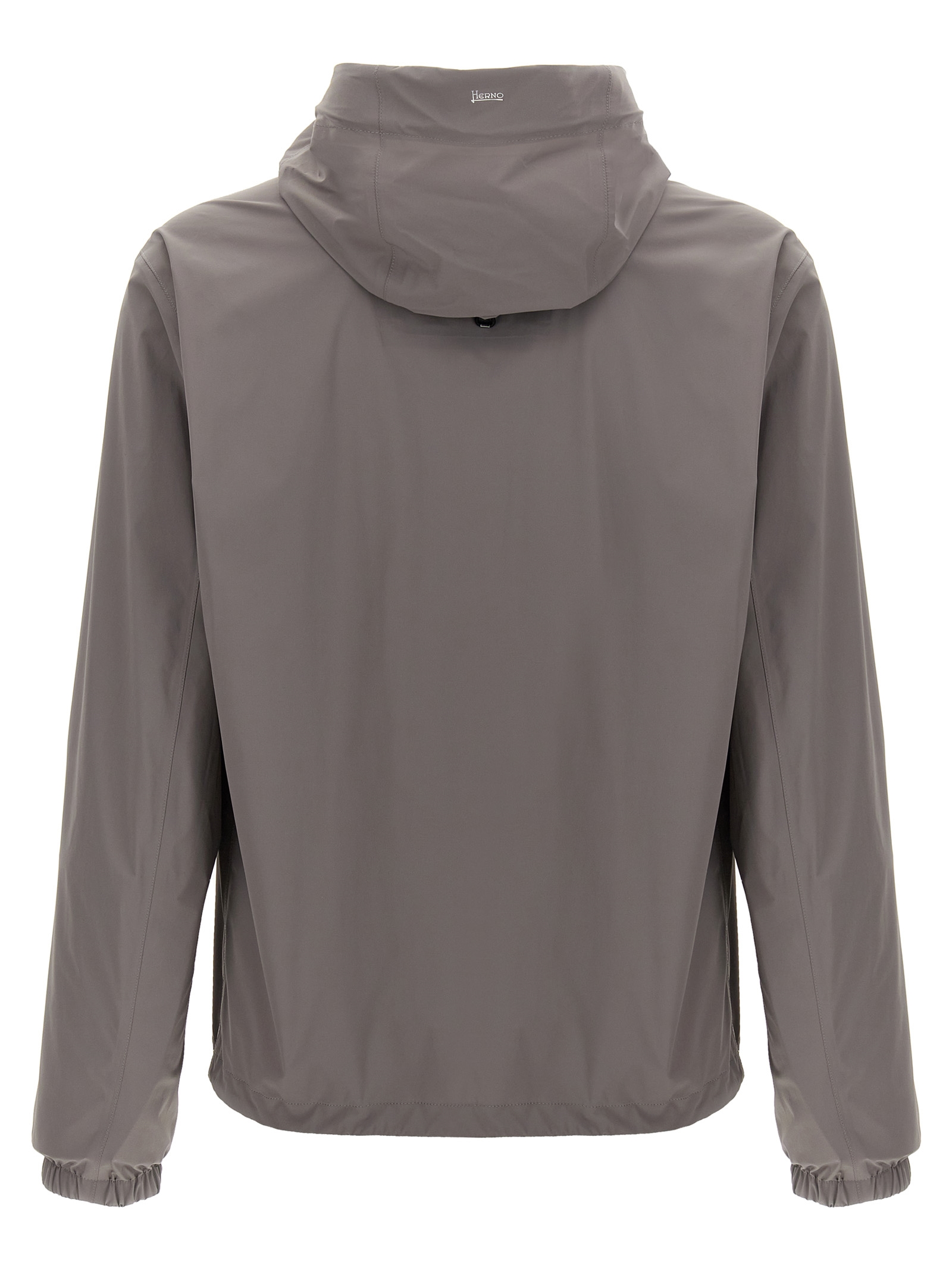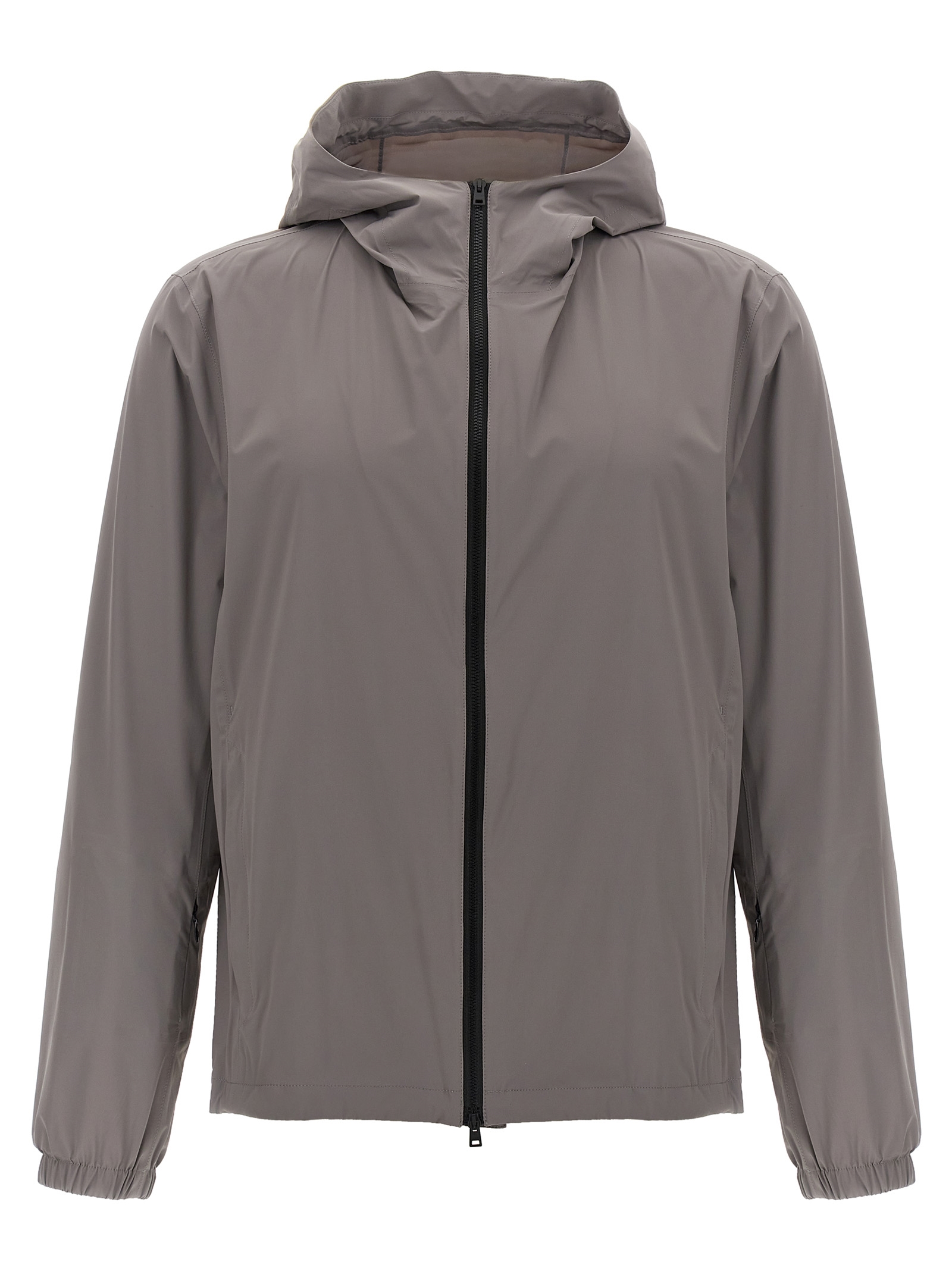 Short jacket with hood in soft and stretch technical fabric, lightweight, zip closure, adjustable drawstring at the bottom. Long sleeves with elastic cuffs, pockets.Өнімнің ерекшеліктері