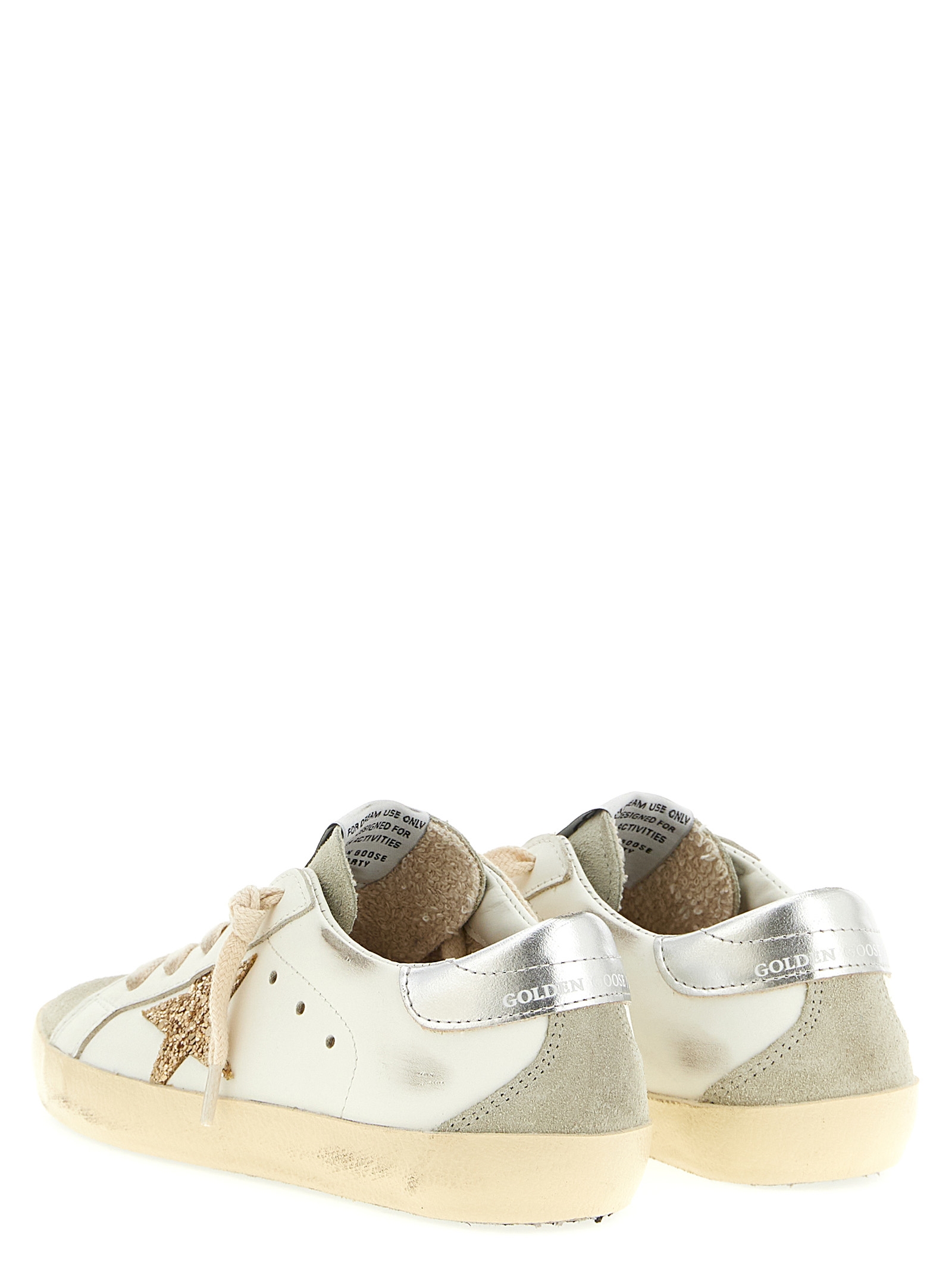 KIDS 'Superstar' used-effect leather sneakers with contrast suede details, glitter side star, laminated leather heel, lace-up closure, rubber sole with vintage effect treatment.