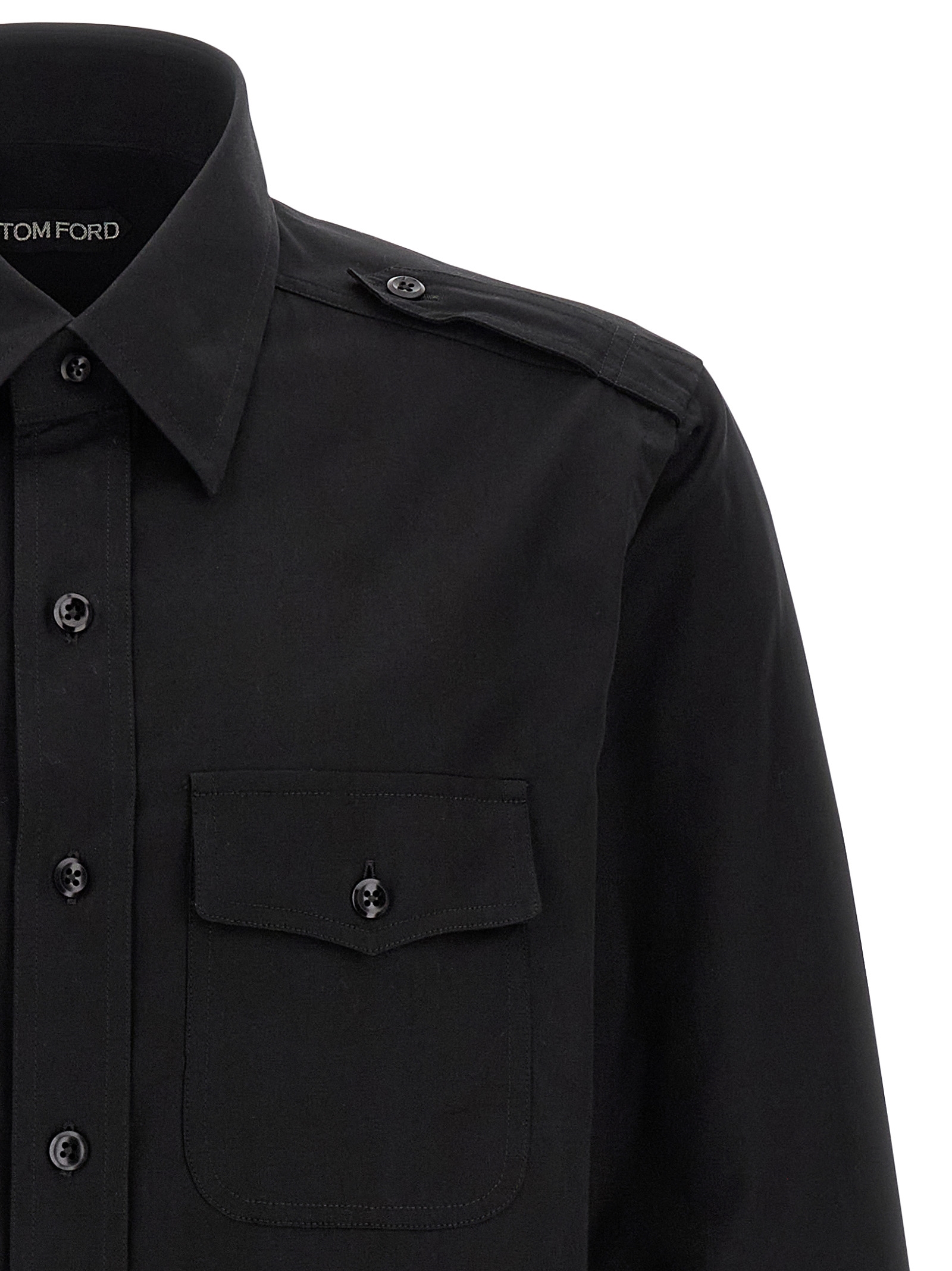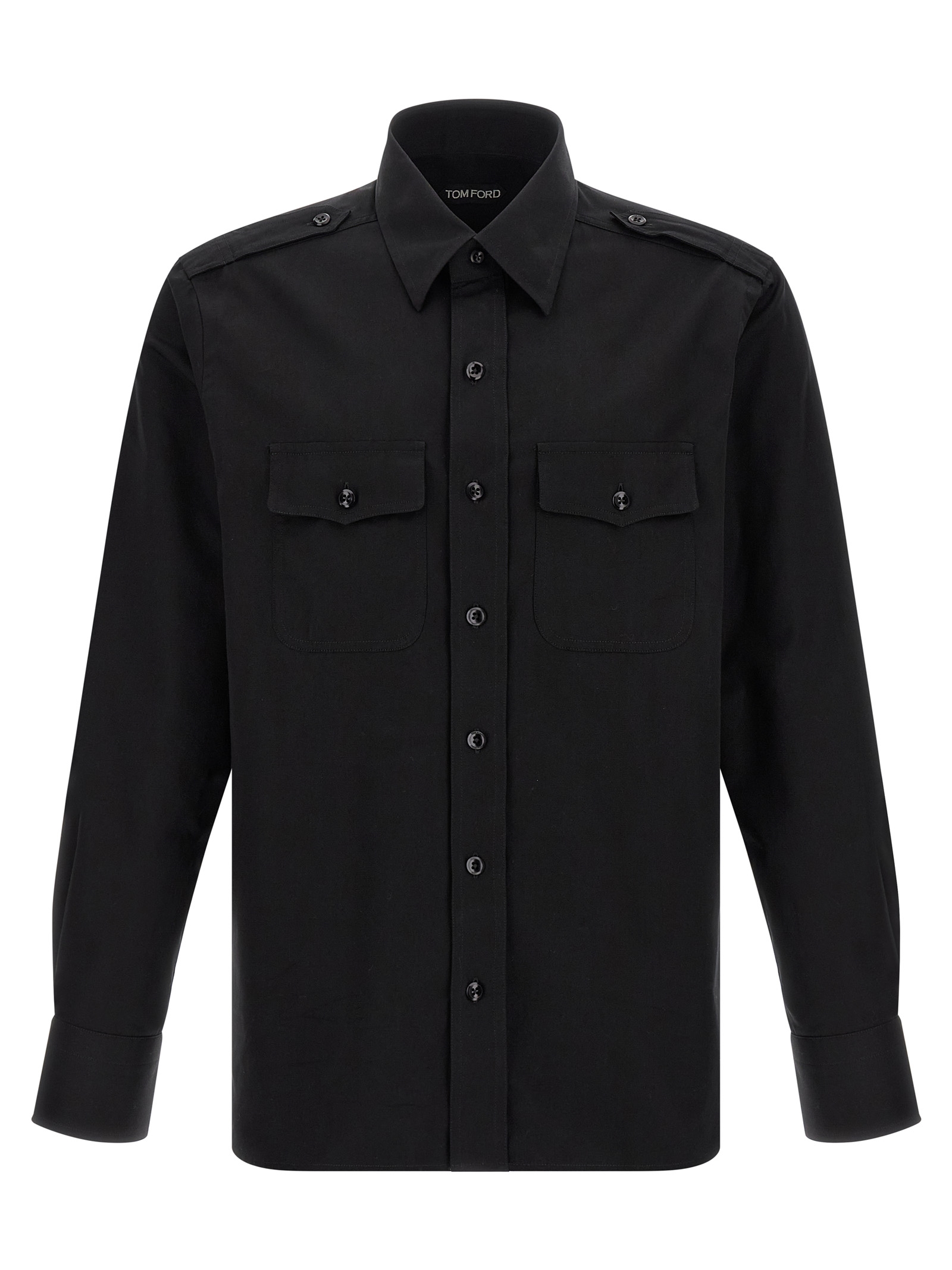 'Military' cotton blend, silk and faille shirt, front button closure, pockets, badges, long cuffed sleeves.Өнімнің ерекшеліктері