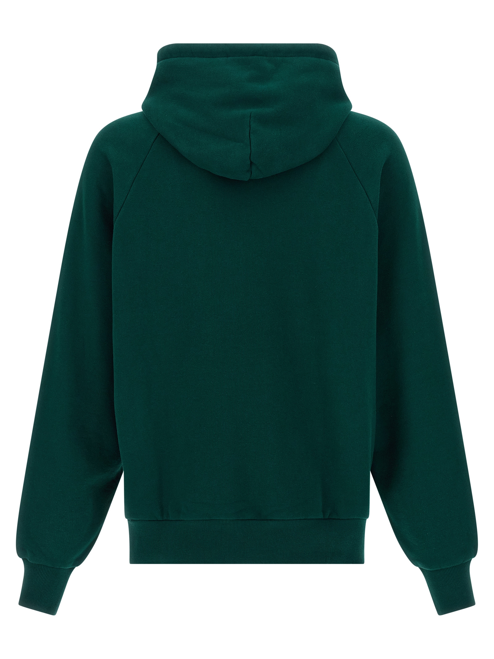 'Ray' hoodie in heavy unbrushed cotton with loopback structure, tone-on-tone 3D logo embroidery on the front, kangaroo pocket, long cuffed sleeves and dropped shoulders.