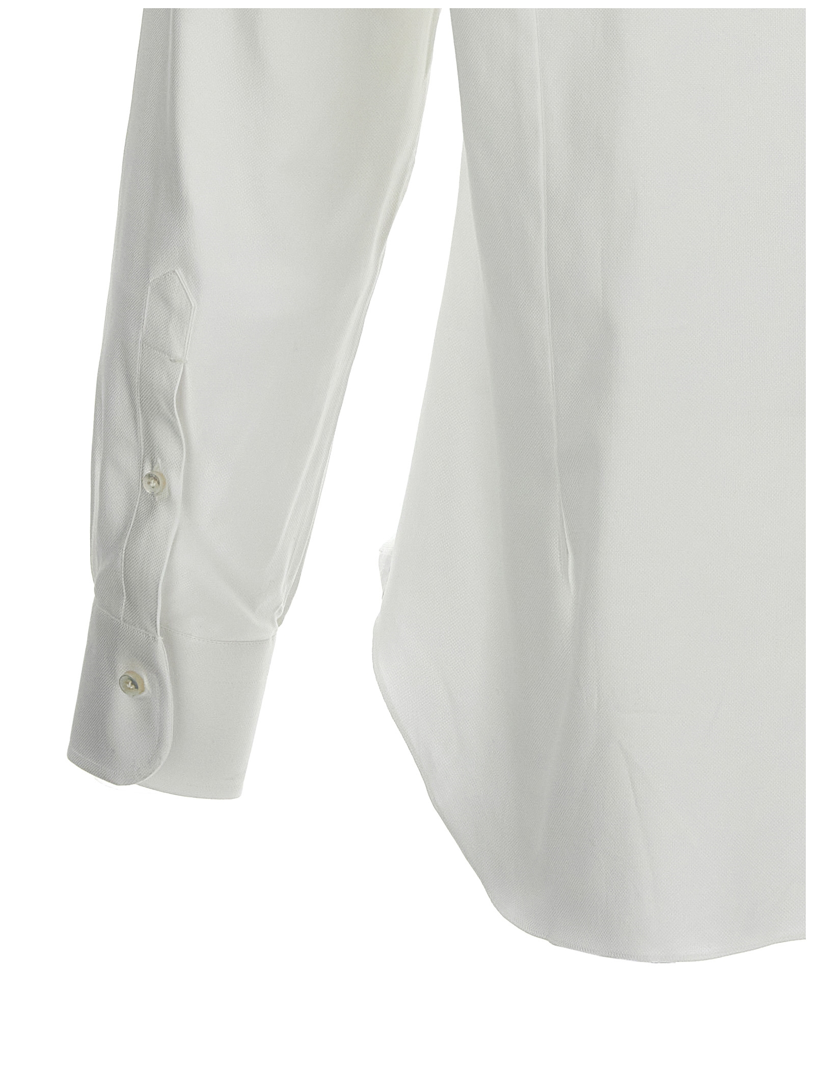 Cotton shirt with button closure, long cuffed sleeves.