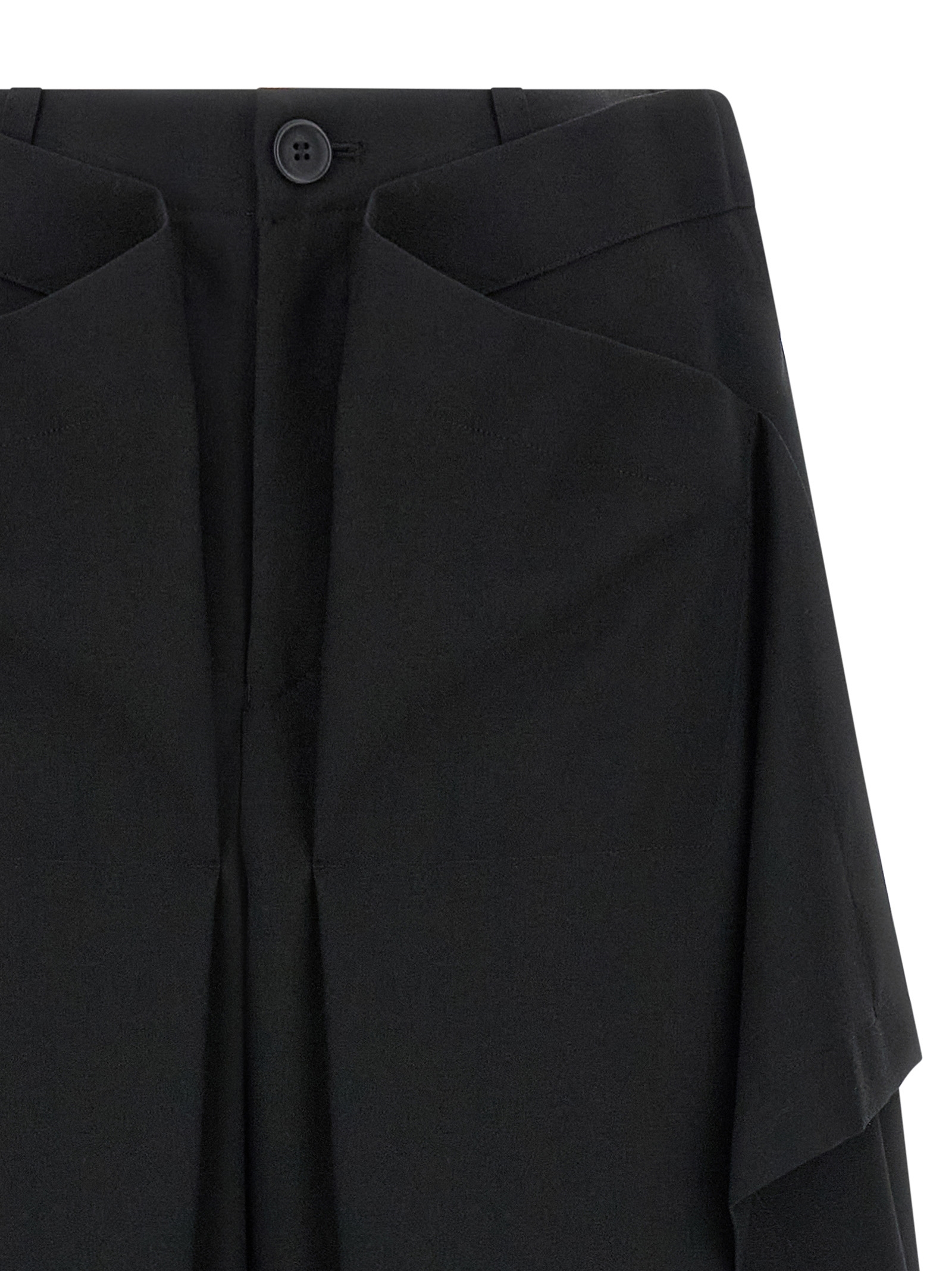 'Uni-Form (Wool)' wool trousers woven with thin fibers finished with Nashiji technique, draped silhouette, wide leg with characteristic side panels, zip and front button closure, pockets, slits on the leg bottom.