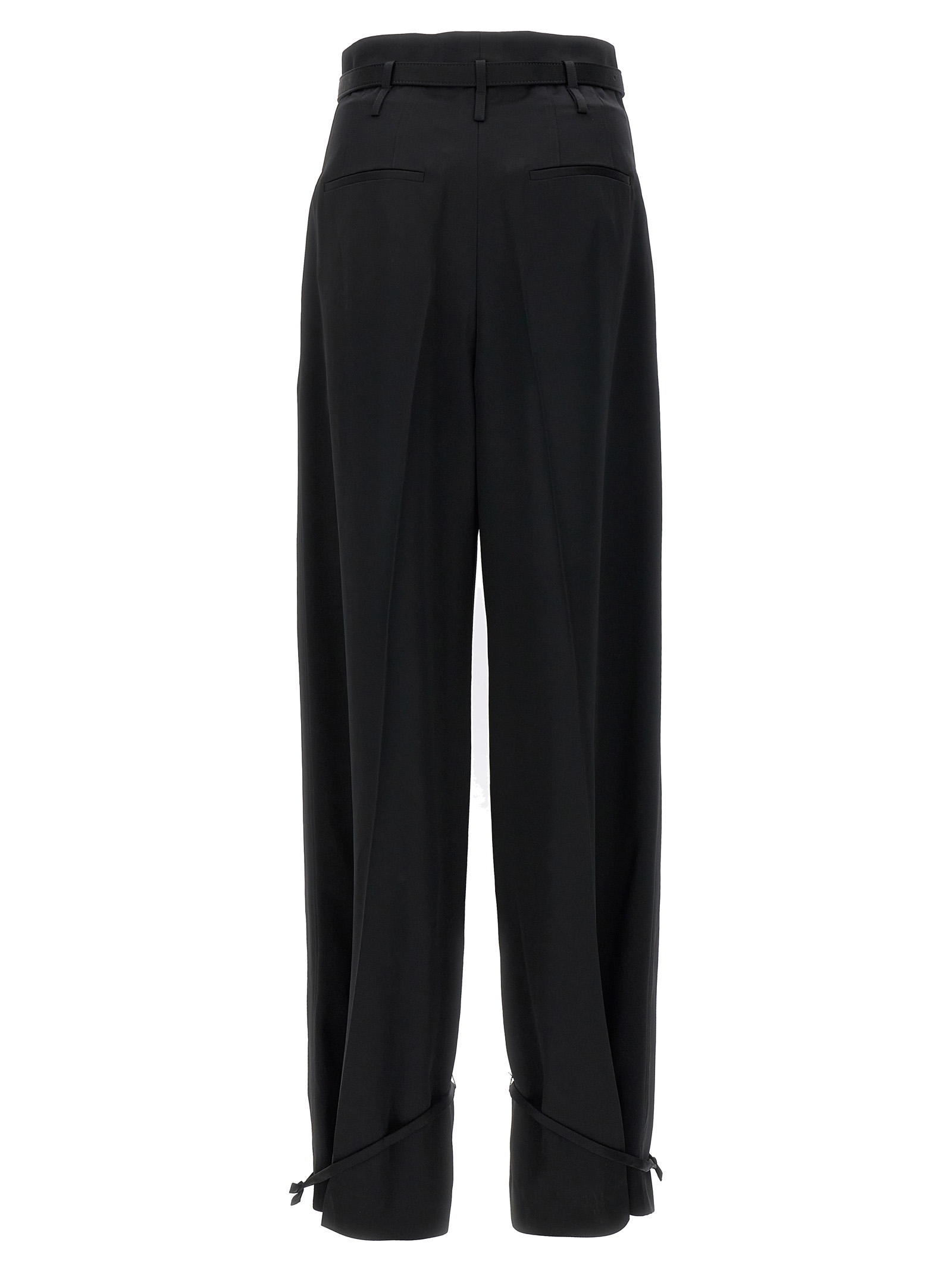 Tailored trousers with loose leg but with the possibility of tightening the ankle through straps, front pences, high waist. Equipped with removable and adjustable belt.Өнімнің ерекшеліктері