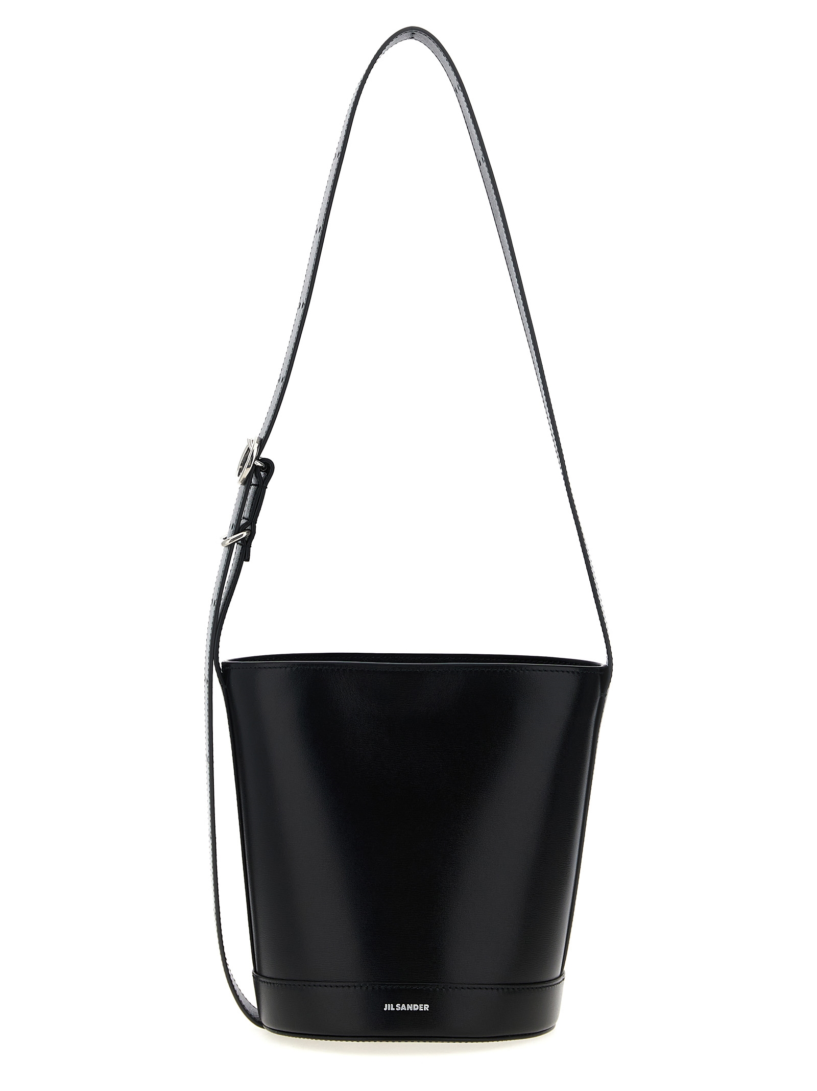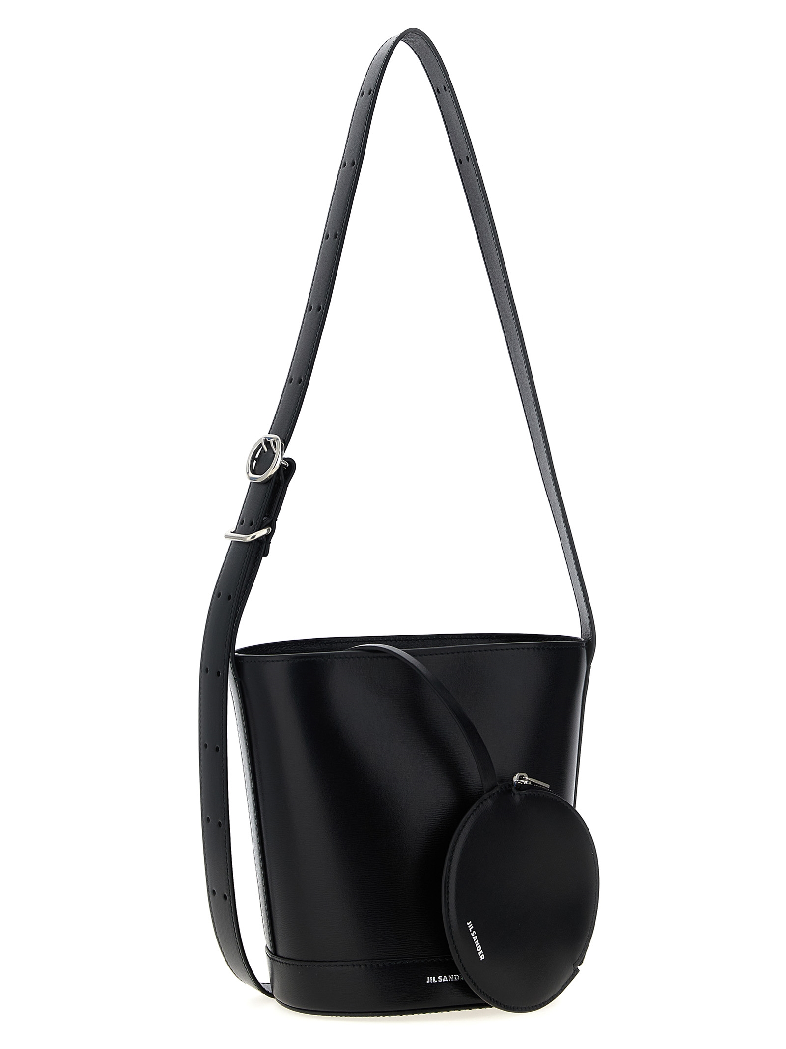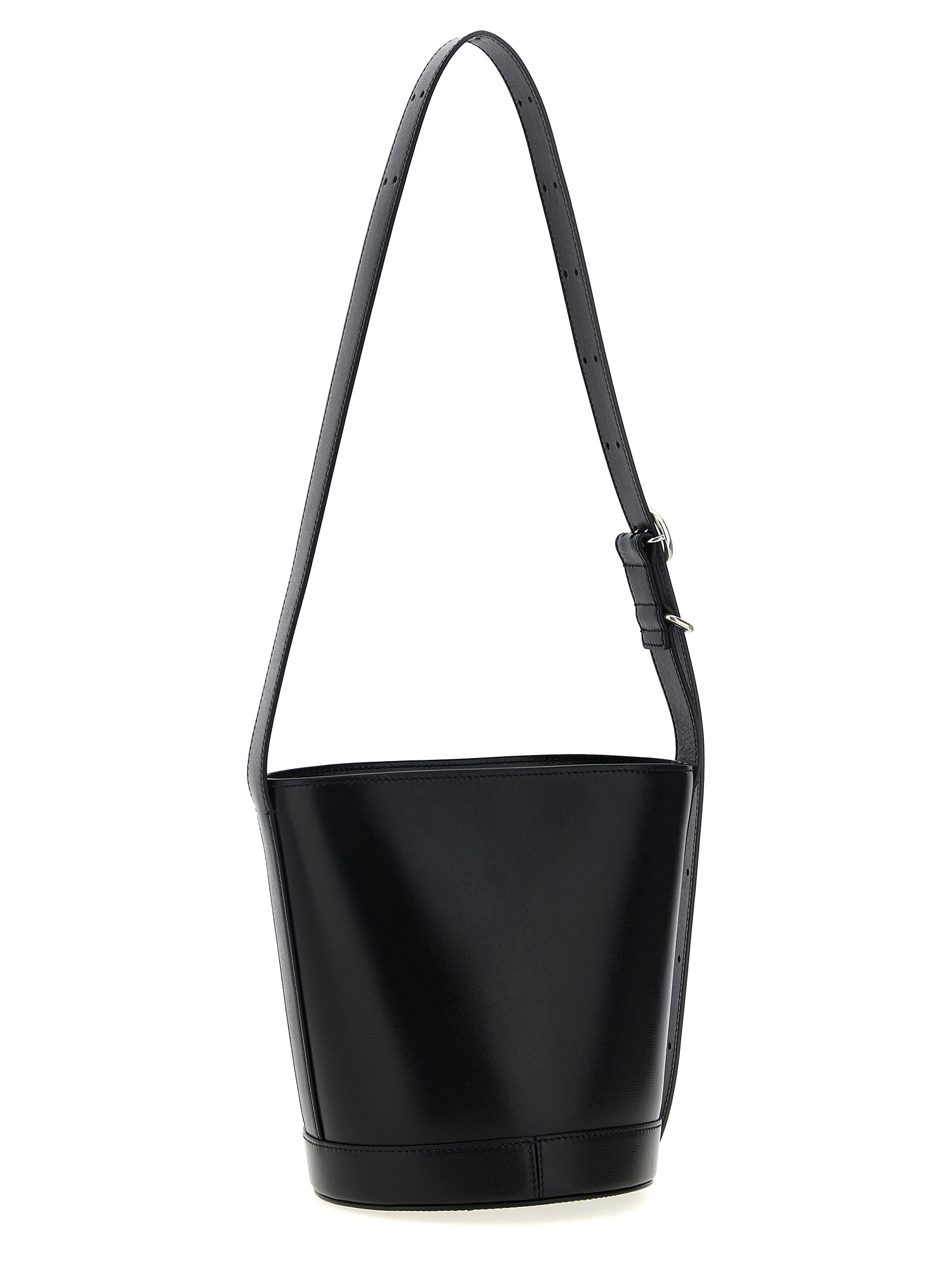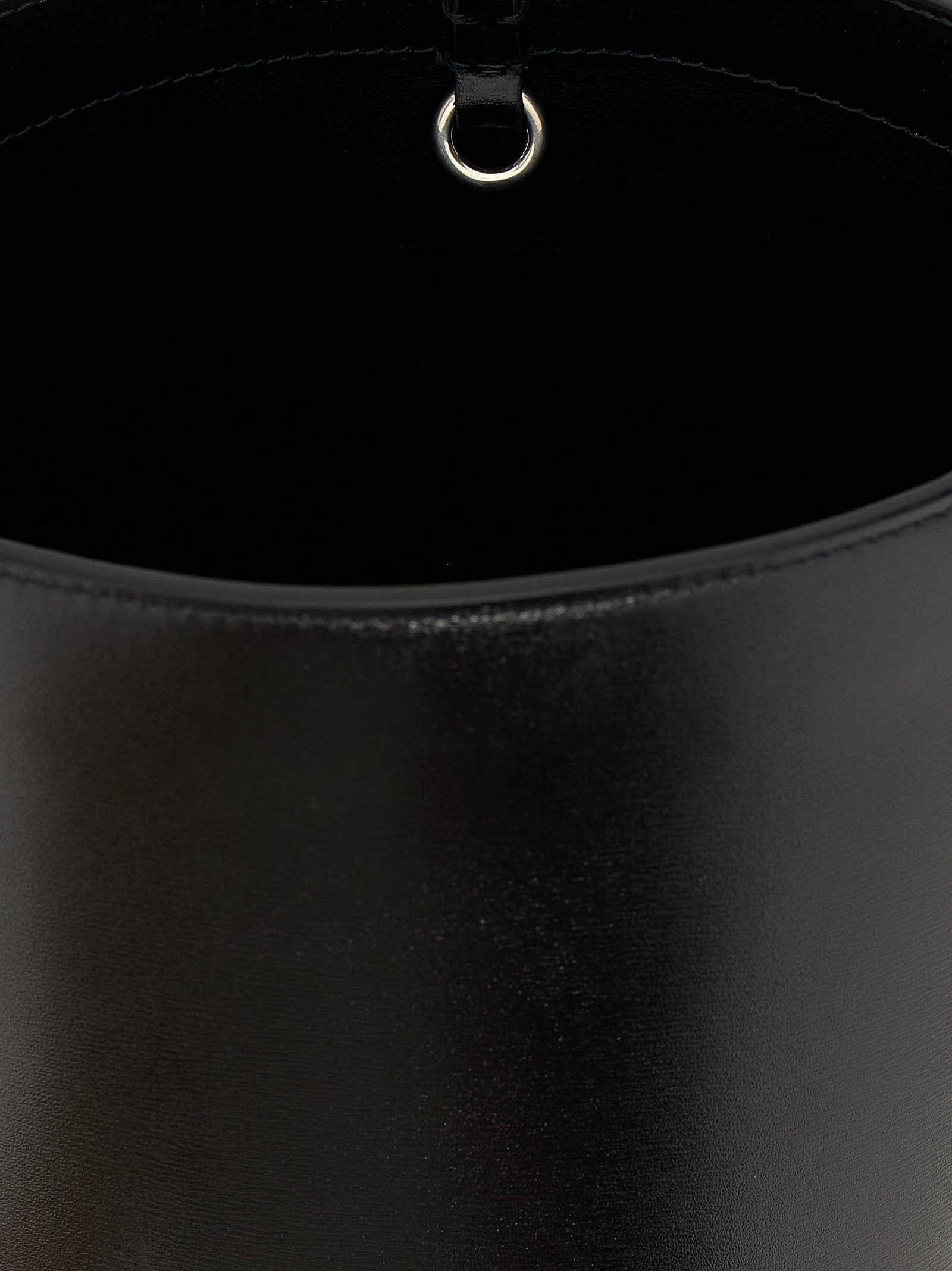'Cannolo Bucket' leather shoulder bag with front logo, hook closure, adjustable shoulder strap with buckle, inner coin wallet with removable zip.Өнімнің ерекшеліктері