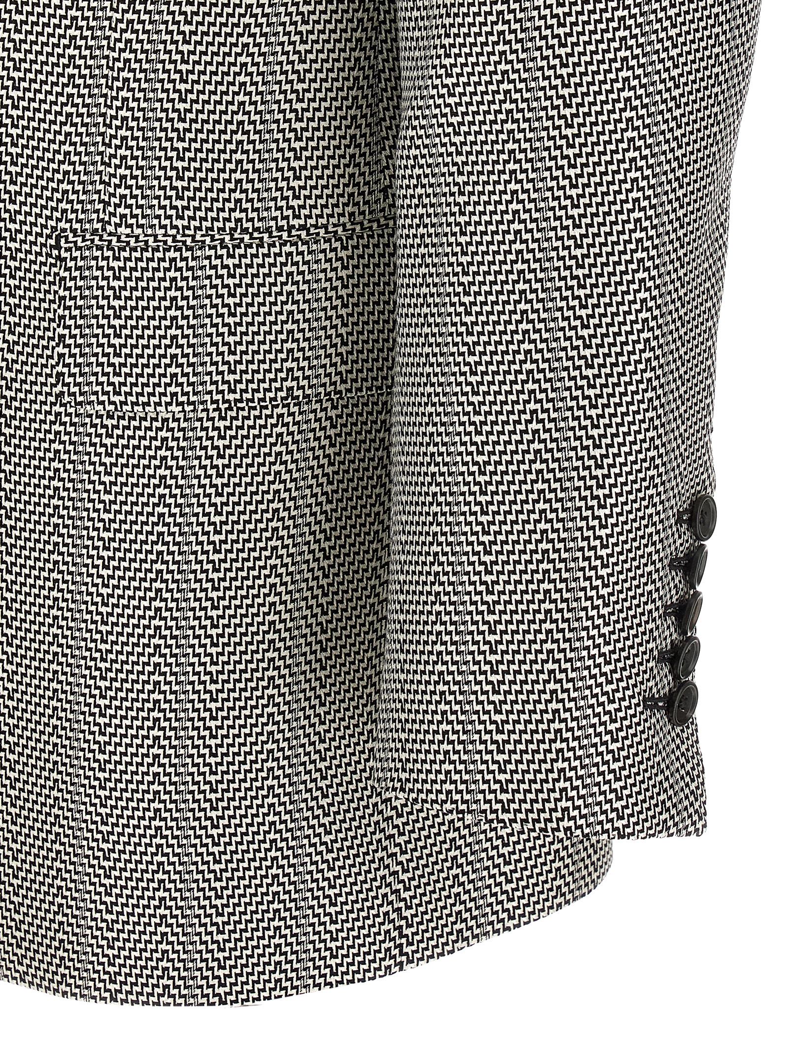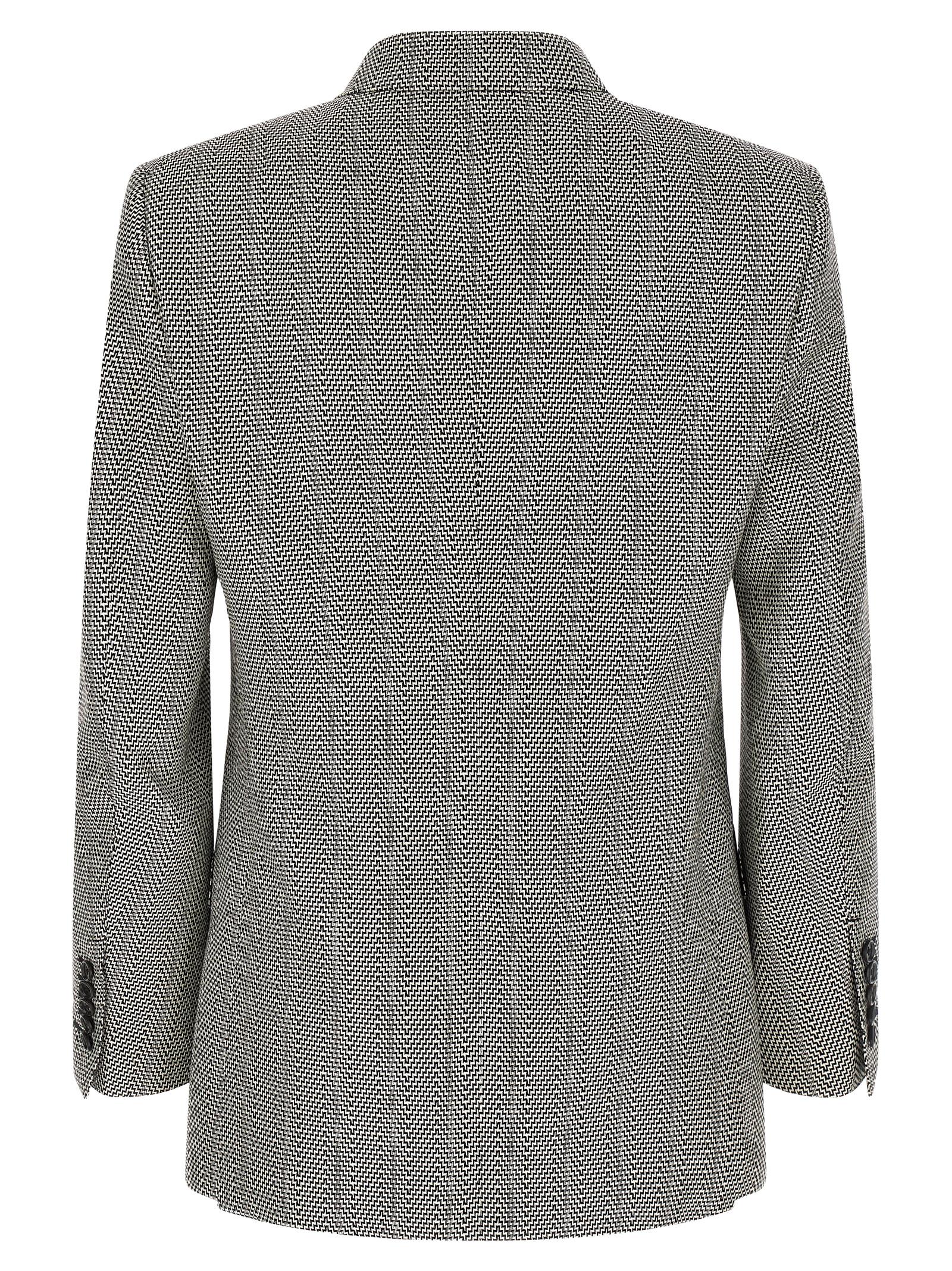 Silk jacquard blazer with all-over geometric pattern, sartorial model, double-breasted with front button closure, peak lapels, front flap pockets, inner pocket, back central split.