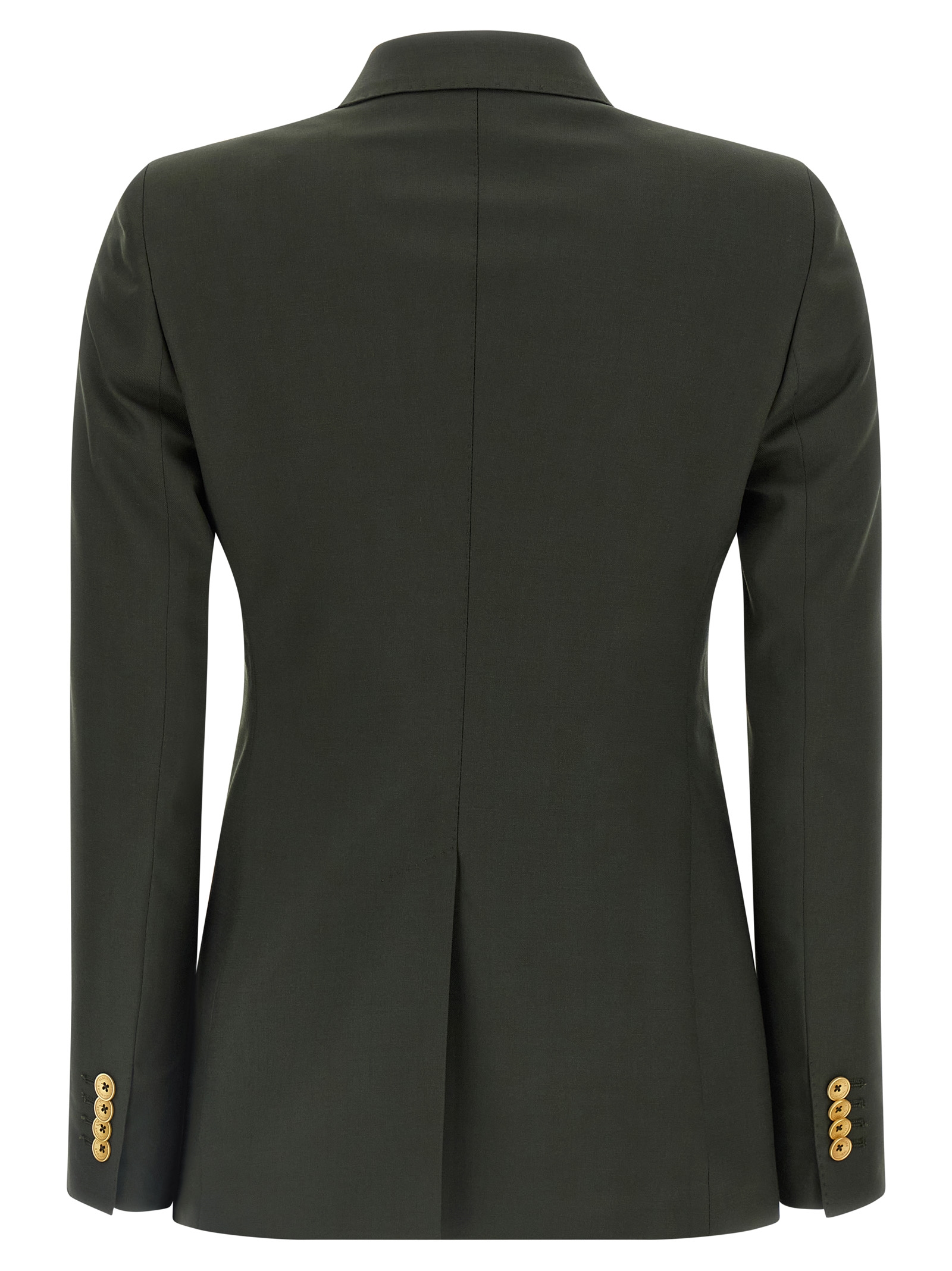 'Parigi' double-breasted wool blend blazer with front metal button closure, peak lapels, chest pocket, flap pockets, padded shoulders, long sleeves, back split, monogram cupro lining.Өнімнің ерекшеліктері